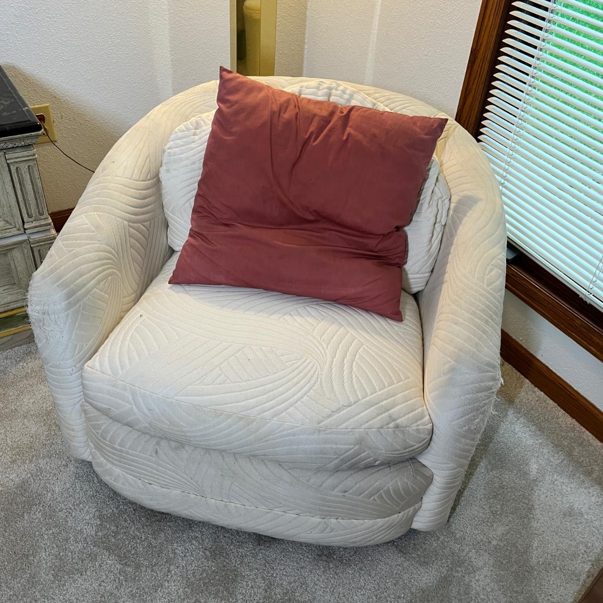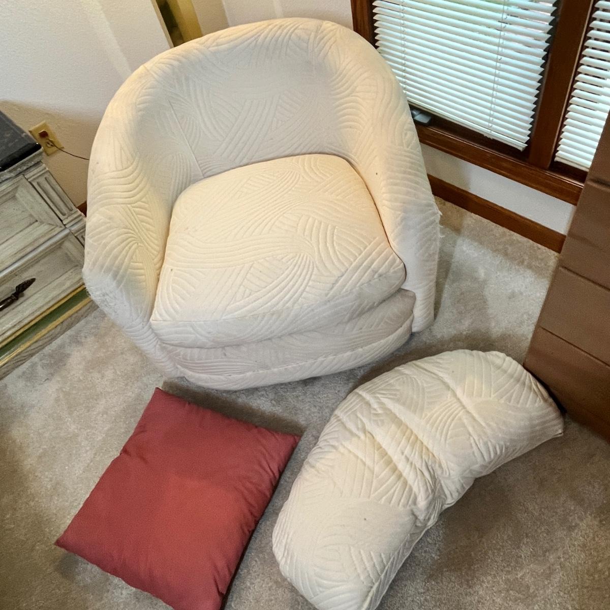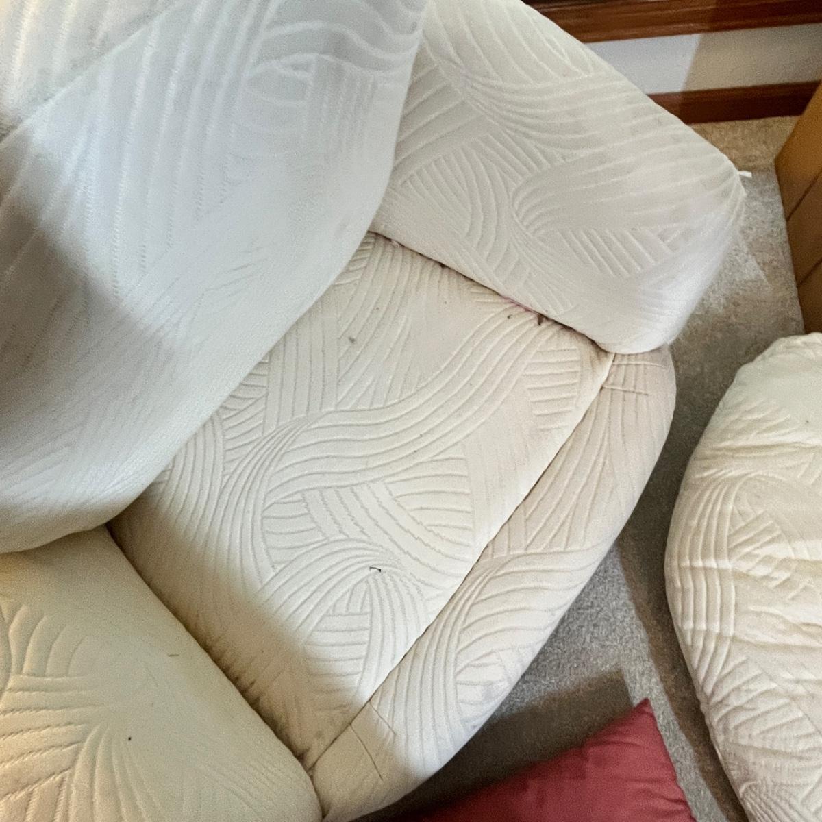 Oversized. Some upholstery damage from pets. Take a good look at pictures.
