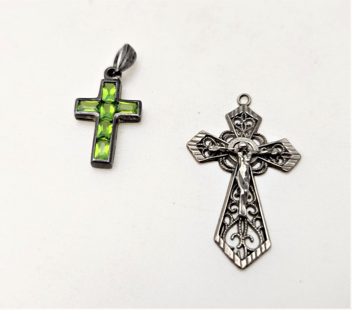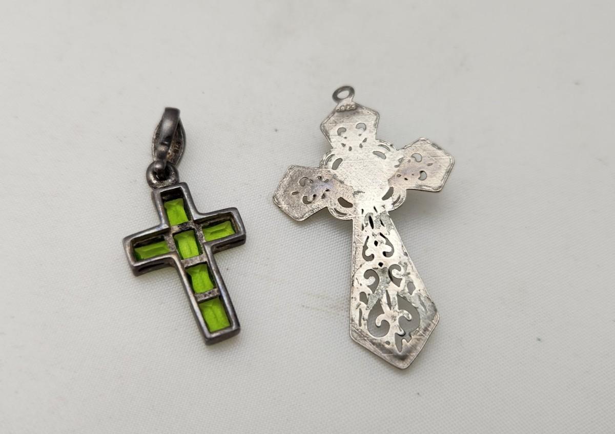 Lot #3 2 piece lot - Sterling crucifix and small cross with peridots mounted in Sterling