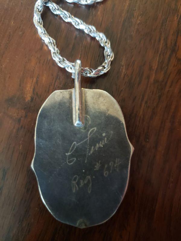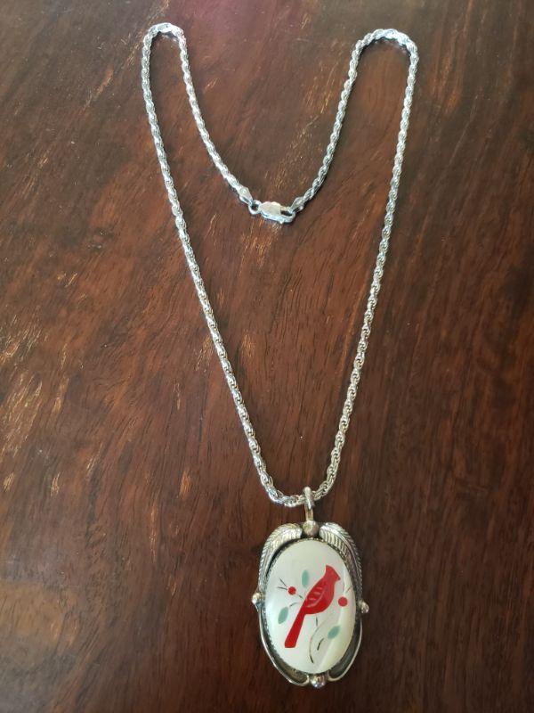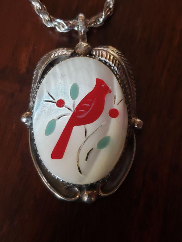 Lot 300: Navajo Red Bird Inlay Pendant and Rope Chain Signed C. Tsosie