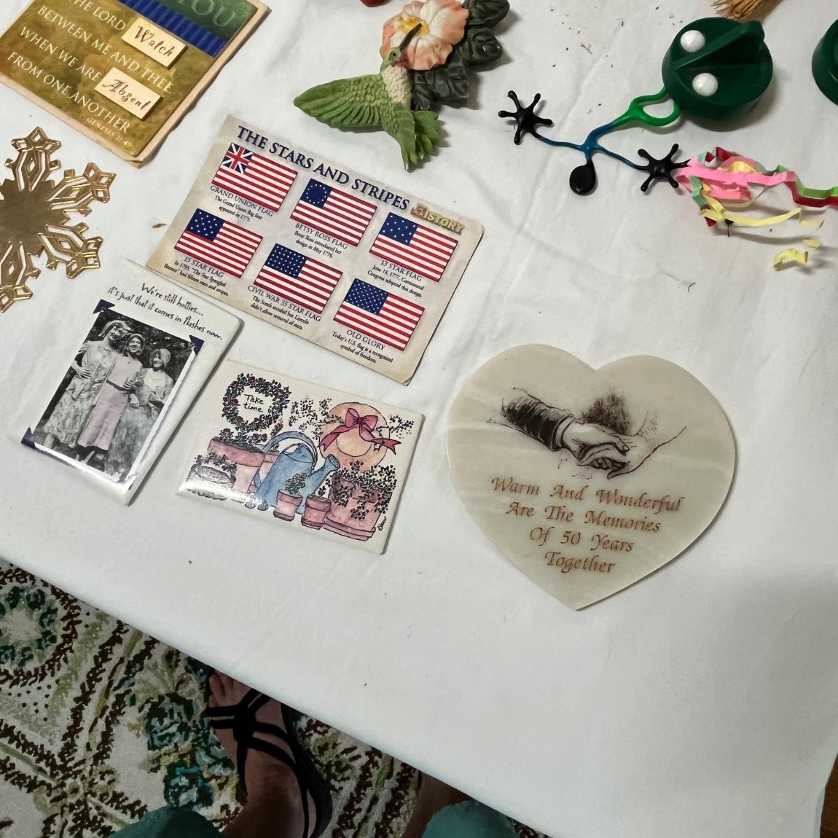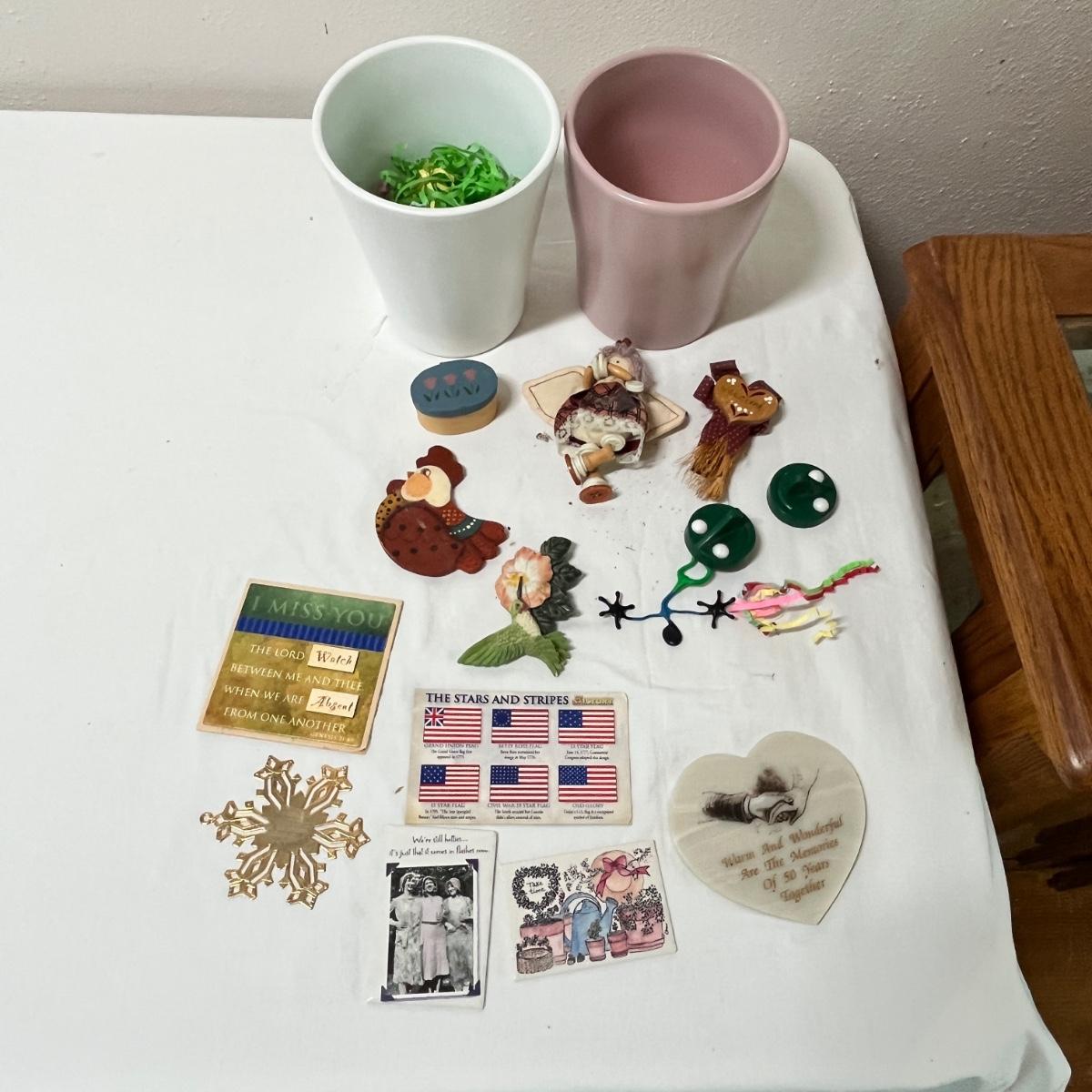 8. Sizes are approximate, you can estimate as our lot number signs are 3.5" long. Also we use an 18" & 36" measuring stick.  We try on certain things to do actual measurements. No guarantees on actual sizes, we try our best!