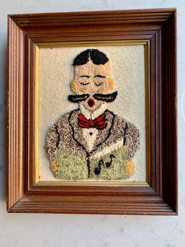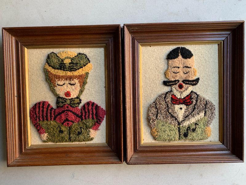 Punch needle framed portraits of old fashioned man & woman 8" x 10"