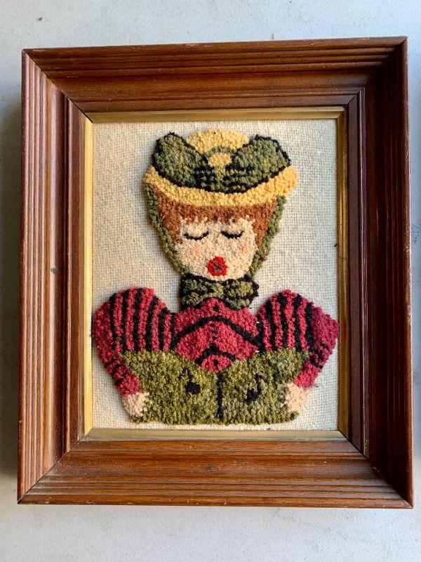 LOT 303 VINTAGE PUNCH NEEDLE ART GAY 90'S COUPLE