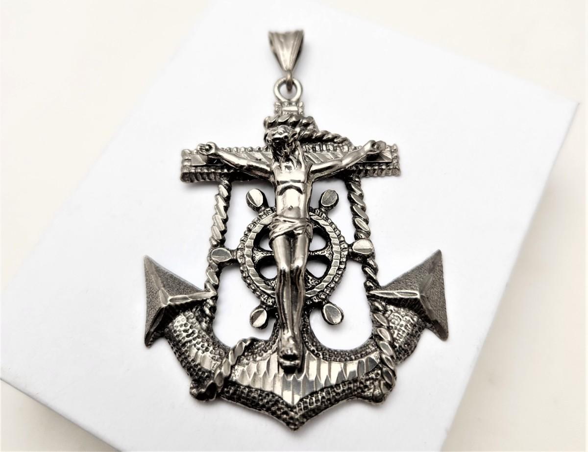 Large vintage Sterling Silver (marked) "Fisherman's Crucifix. Highly detailed, measures 3 inches long, weighs about 19.3 grams. Good condition.