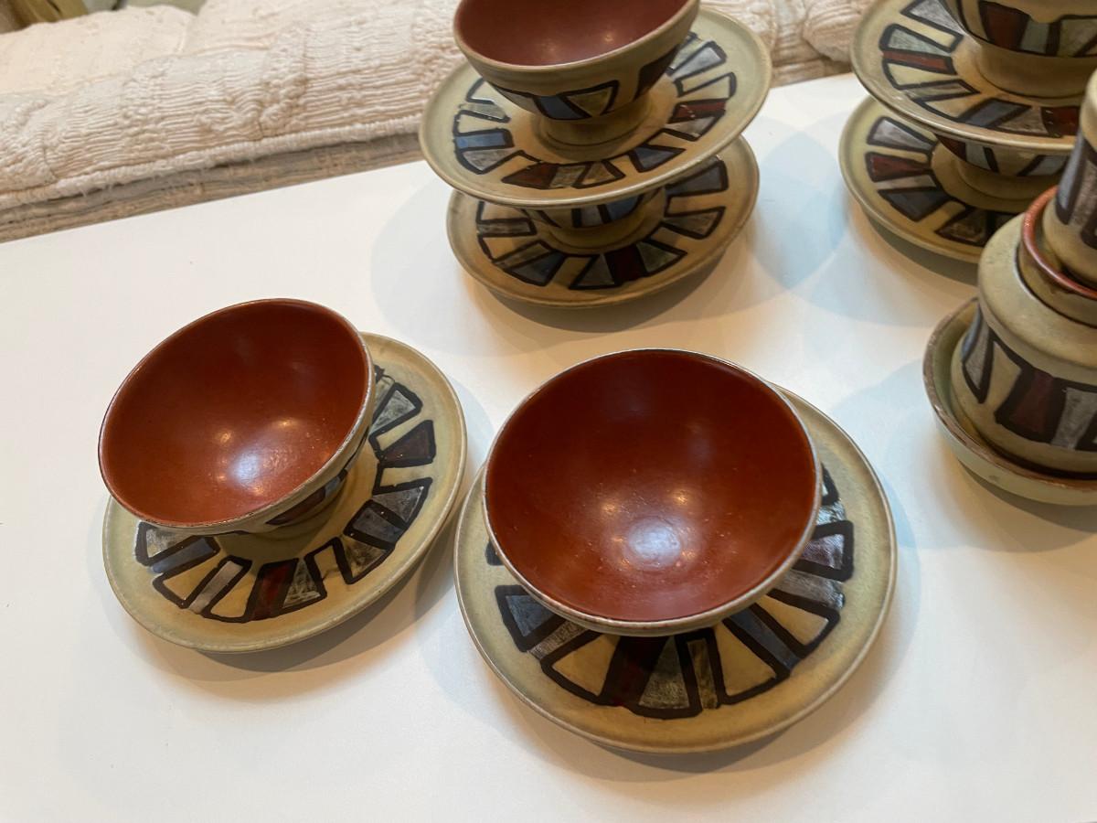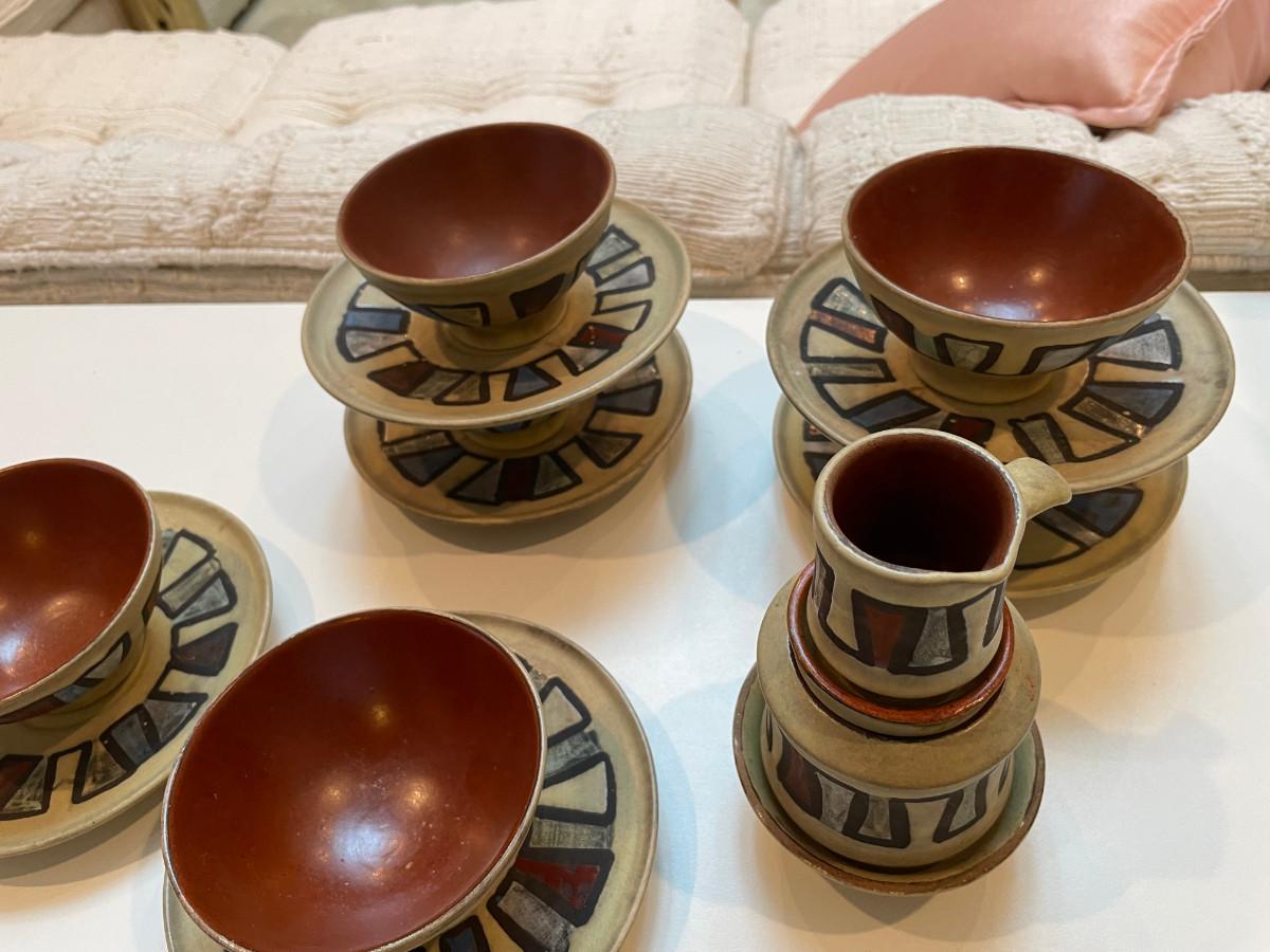 Rice bowls & saucers w/ serving items.