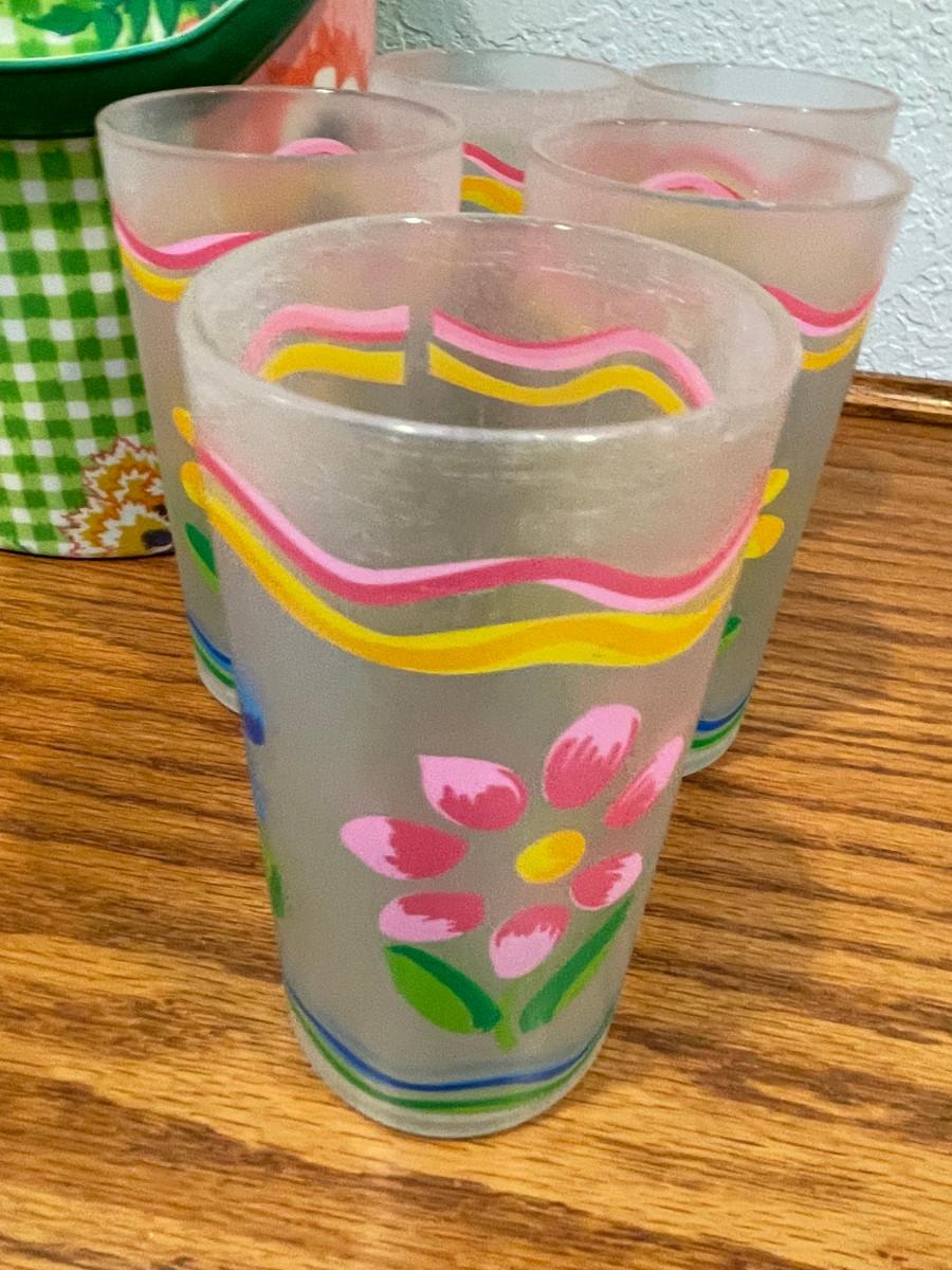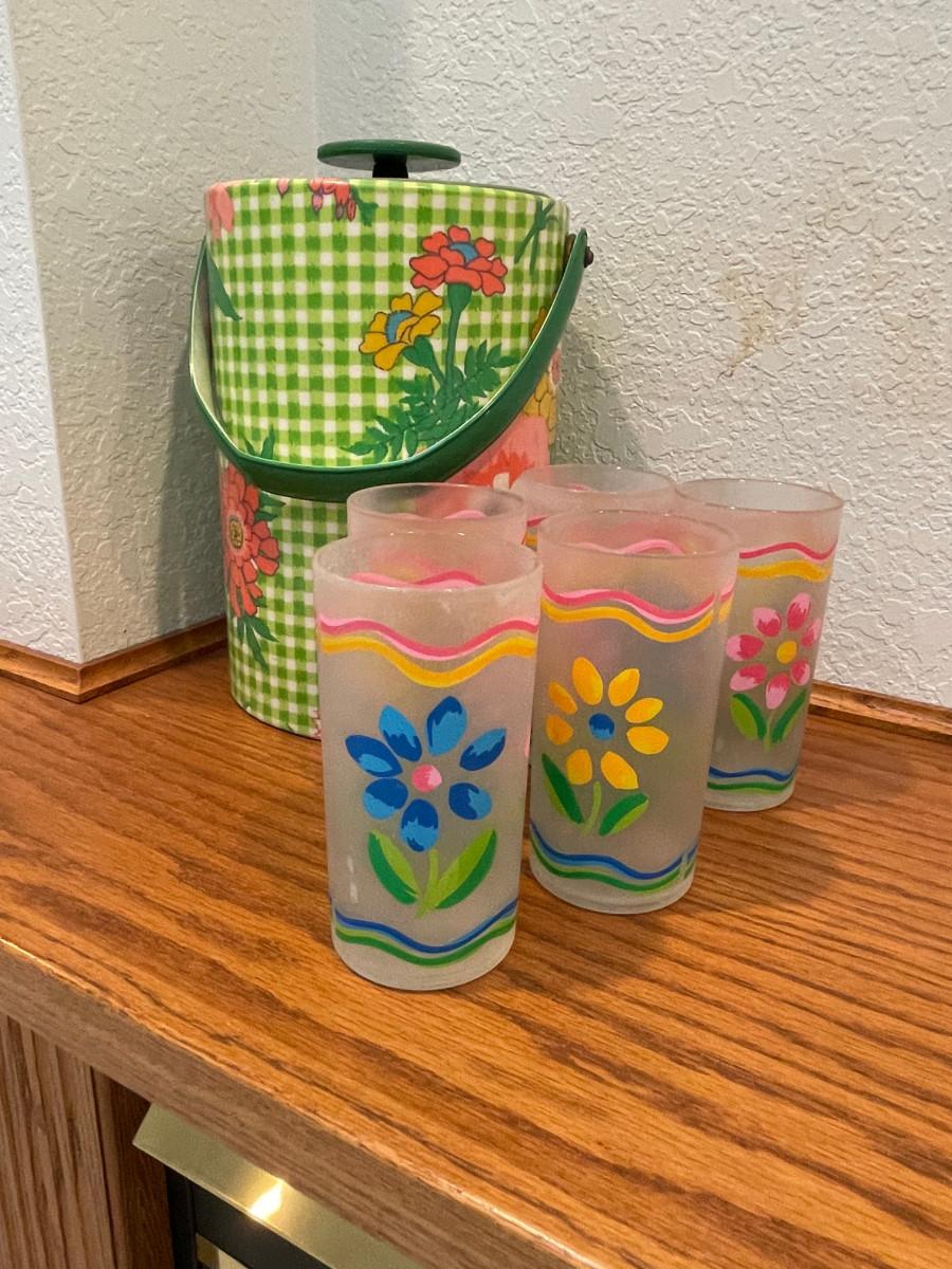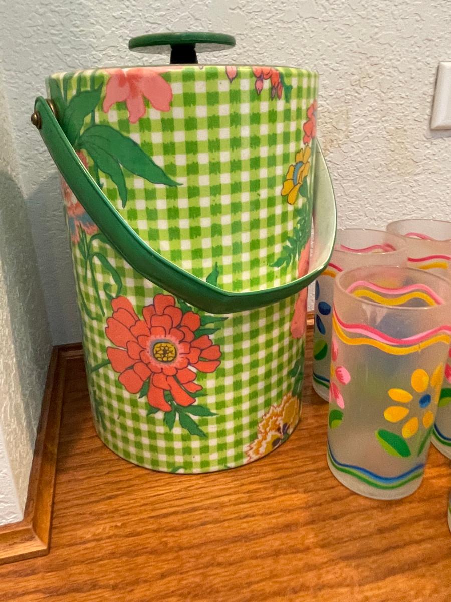 Tall ice bucket w/ plastic tumblers. All in good shape!