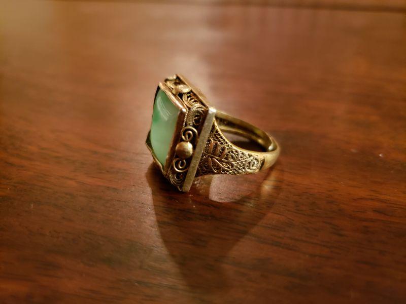 Lot 327: 1930's Chinese Import Silver Adjustable Filigree Ring