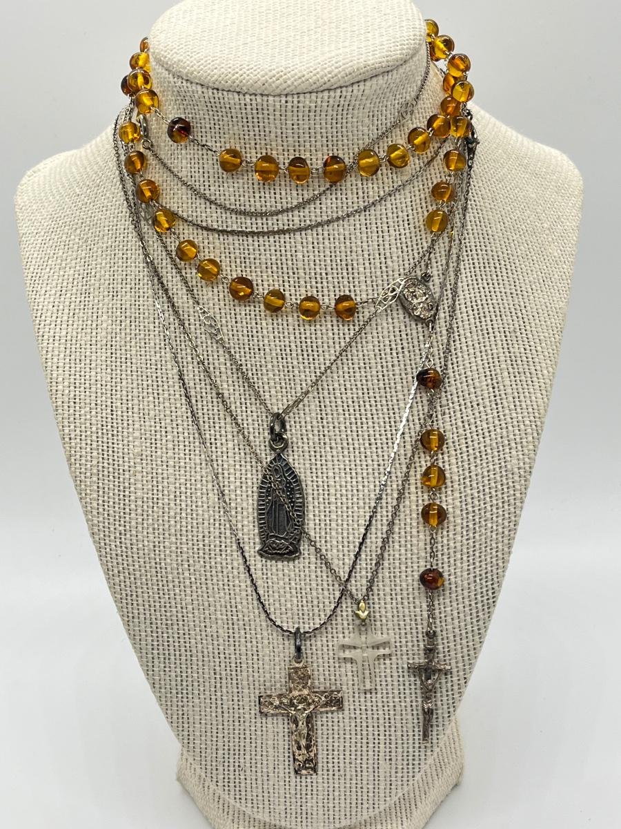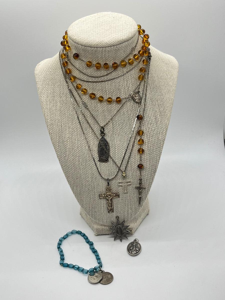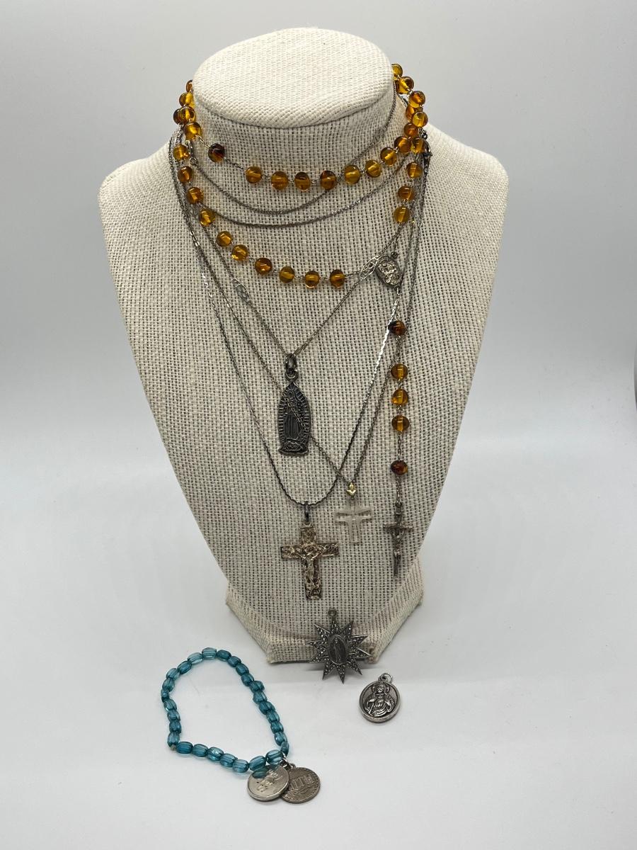 LOT 327J: Religious Jewelry Lot - Sterling Silver Pendants and More
