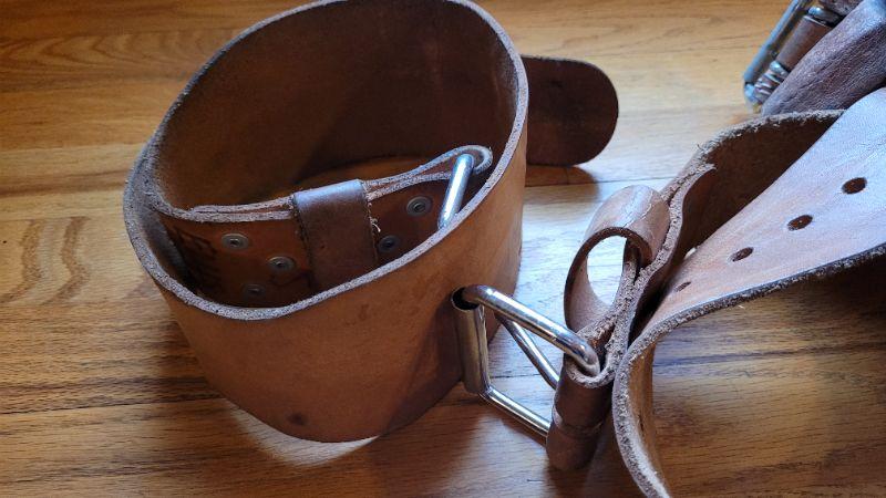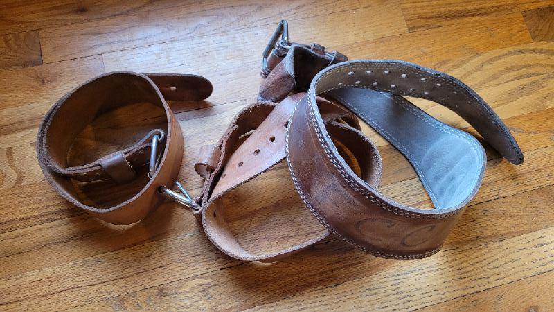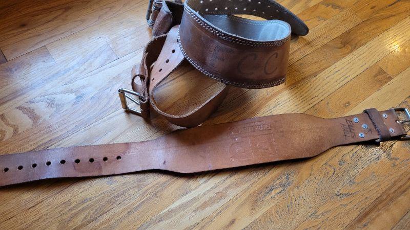 Lot 329: (3) Vintage Back Brace Leather Heavy Duty Weightlifting Belts