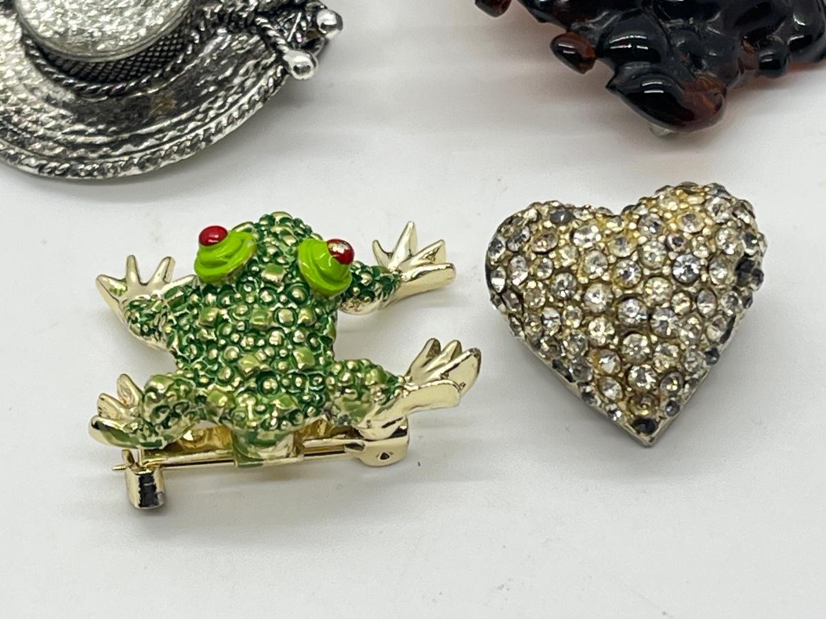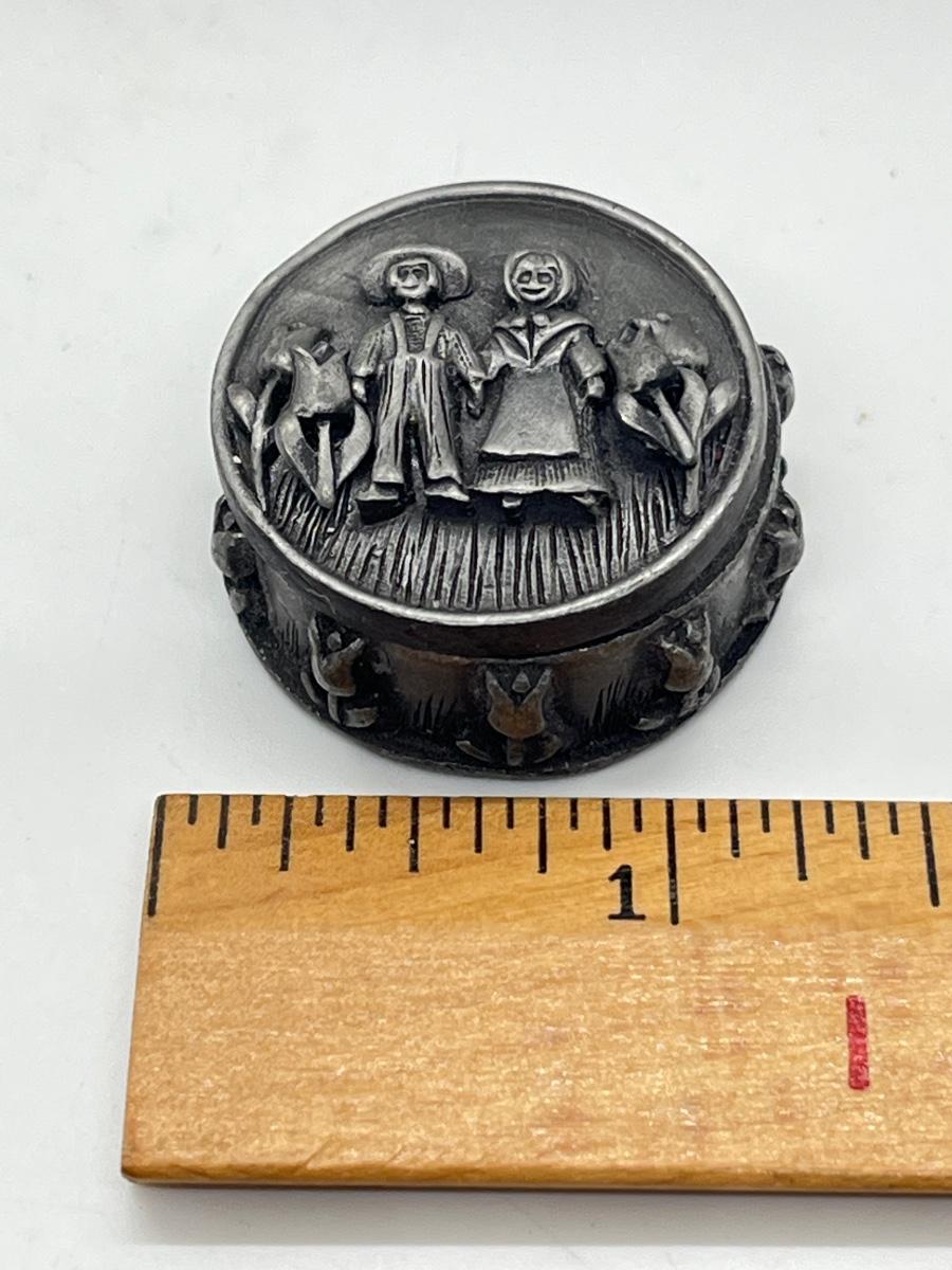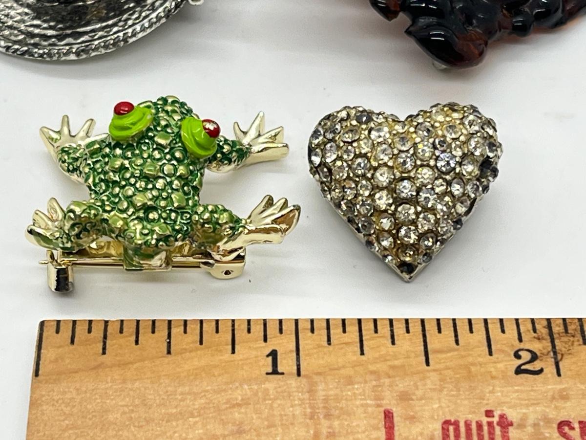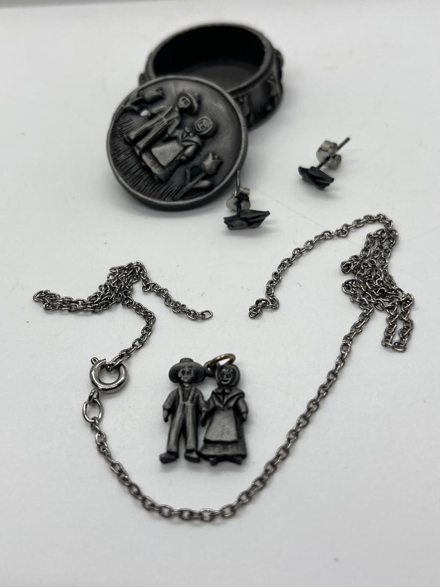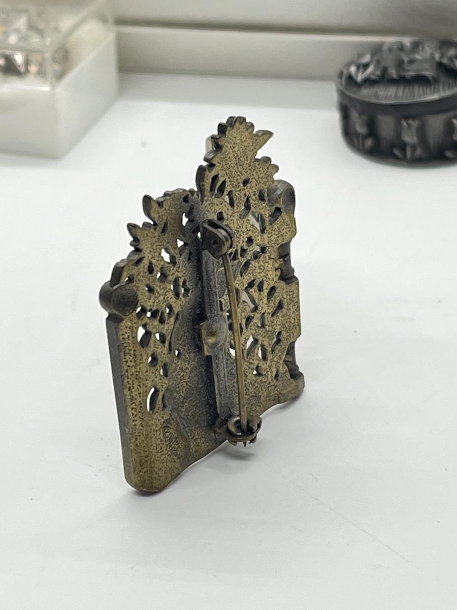 LOT 329J: Vintage Brooches / Pewter Trinket Box Jewelry Set