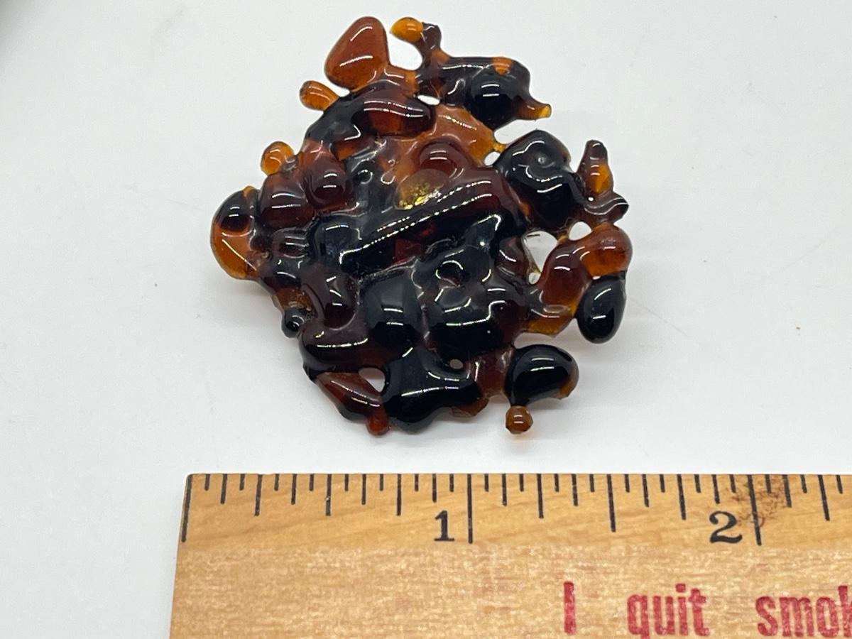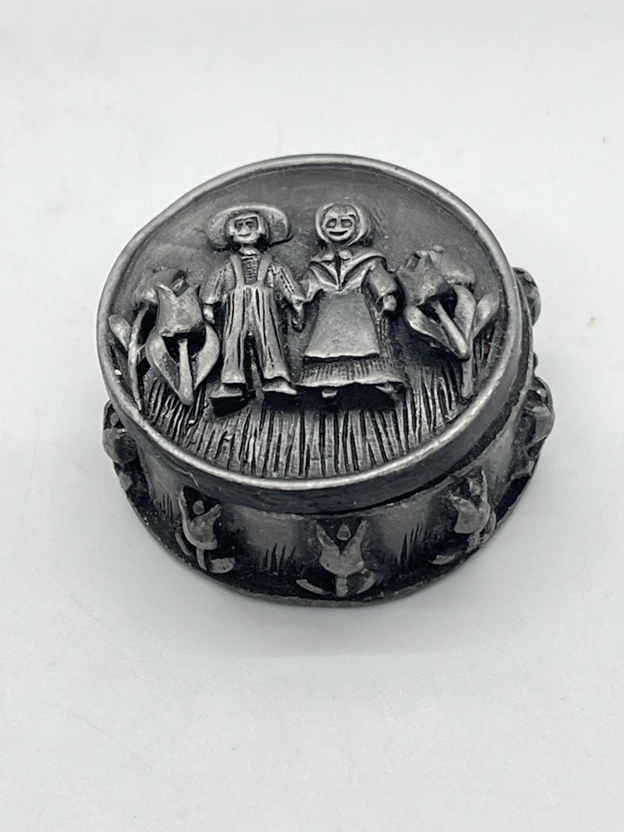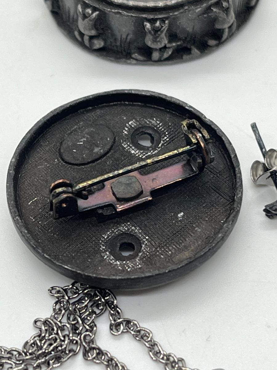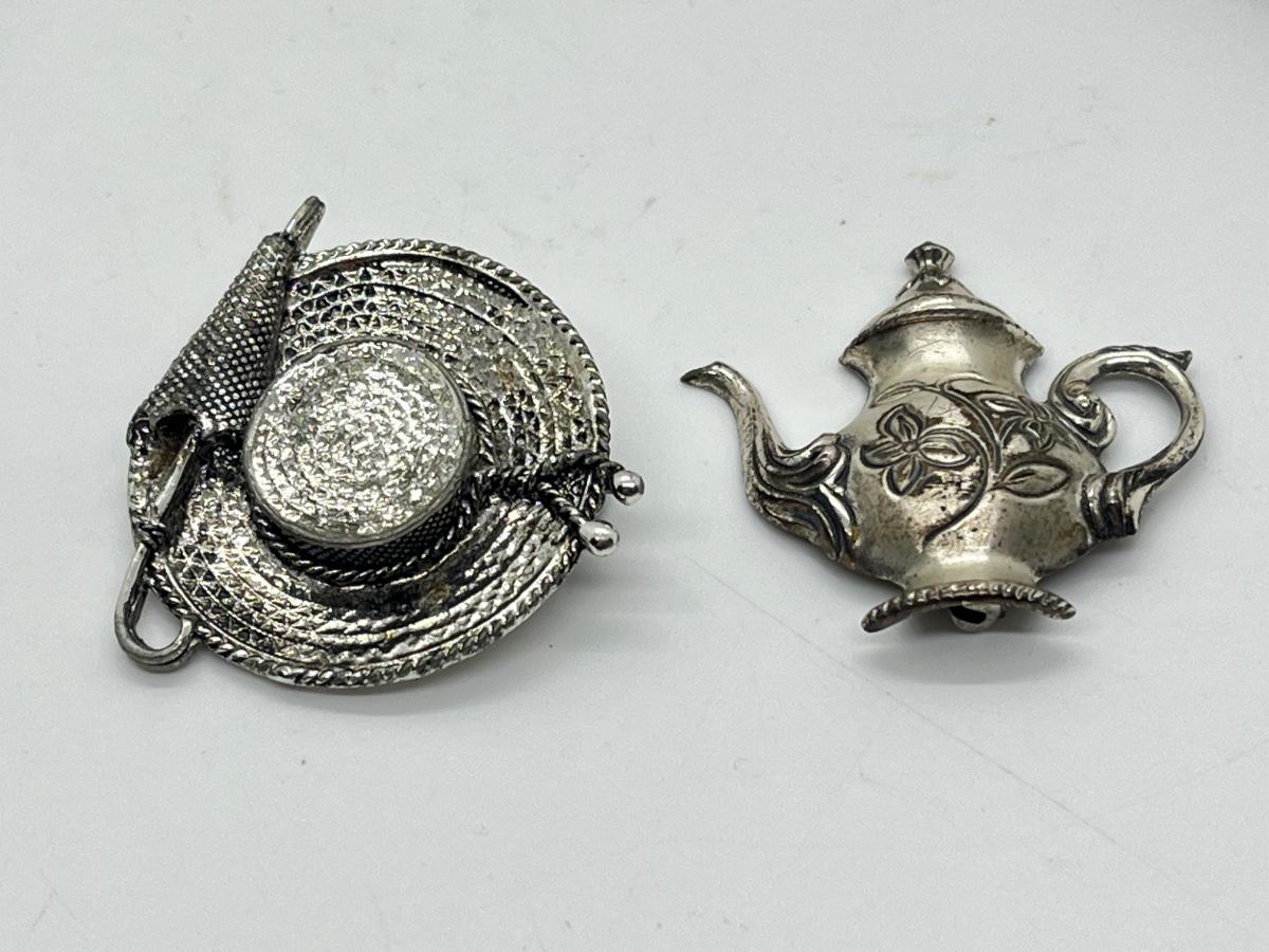 LOT 329J: Vintage Brooches / Pewter Trinket Box Jewelry Set