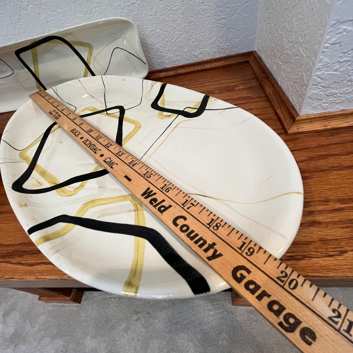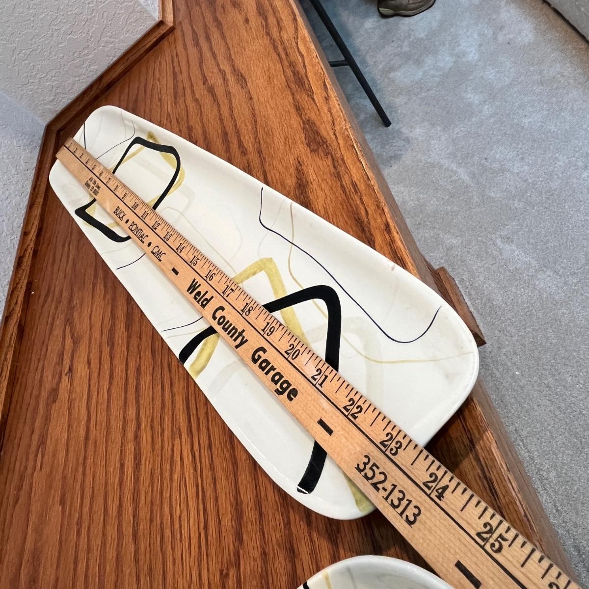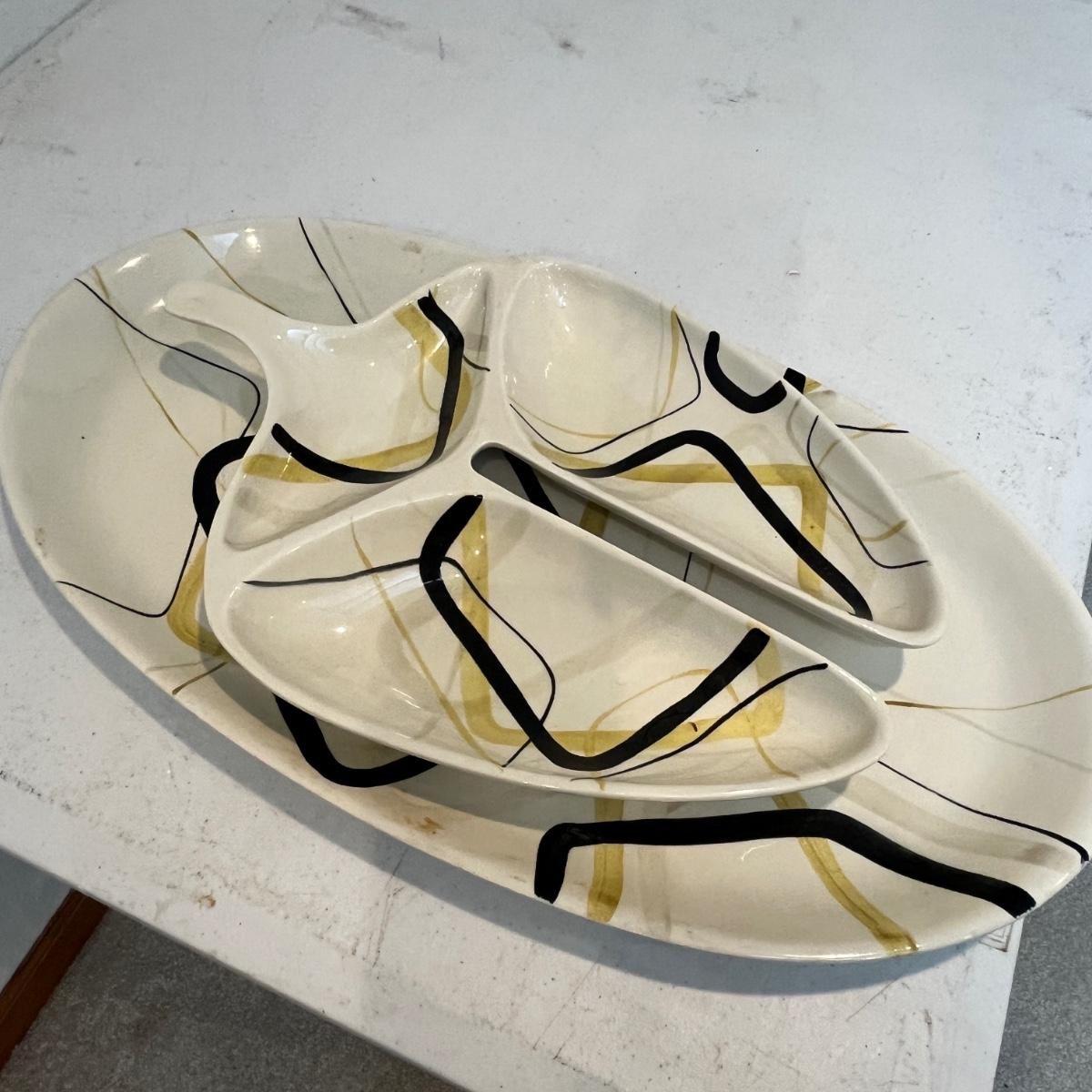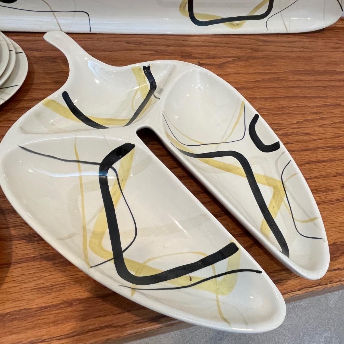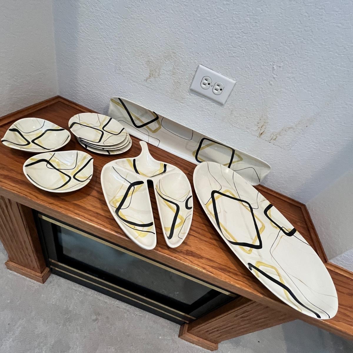 The relish is the only piece that doesn't have a chip. The rest all have small chips on the rims...a problematic issue with Red Wing. Displays great and some harder to find pieces!