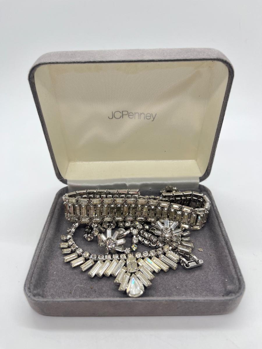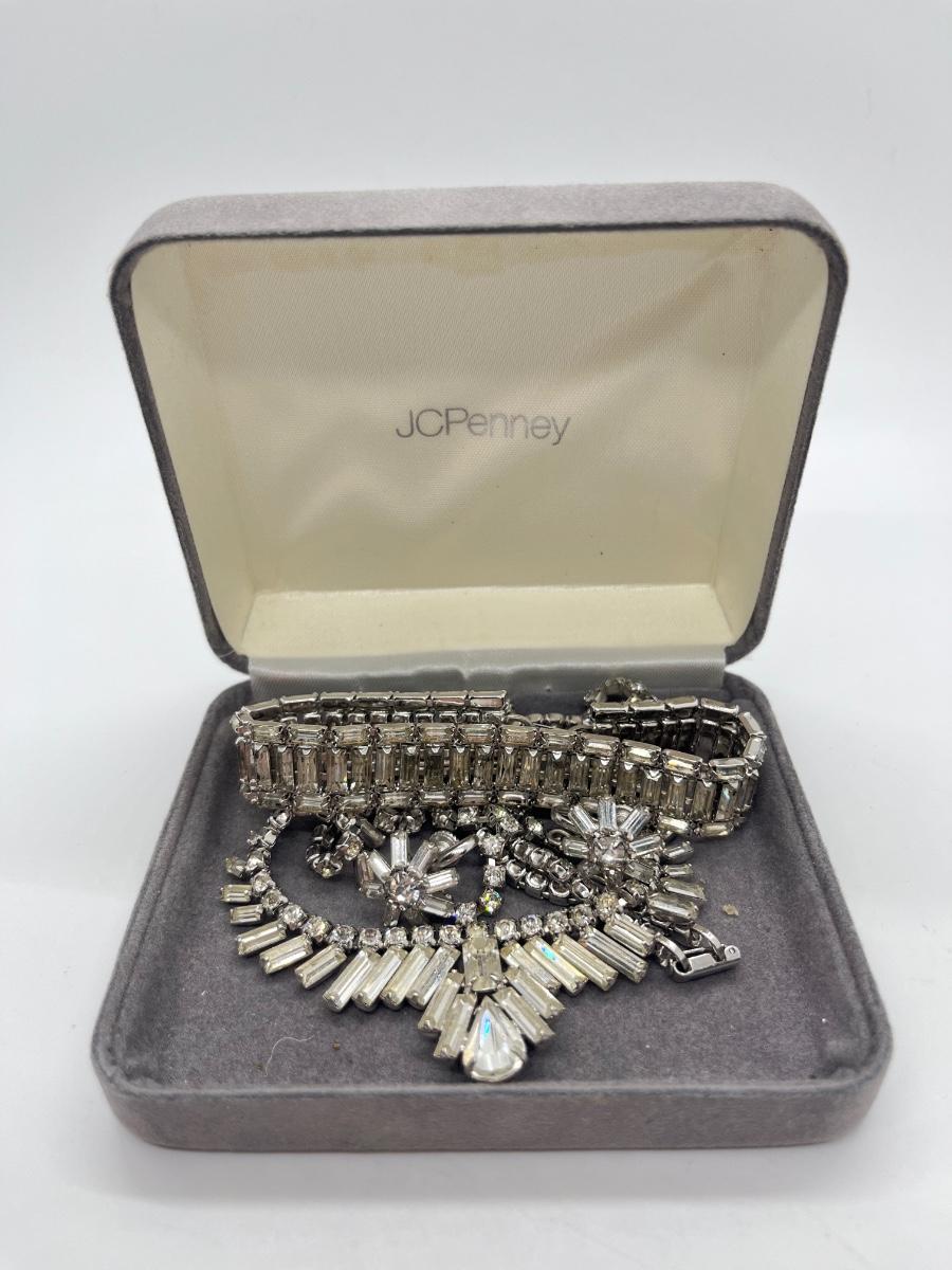 LOT 337J: Silvertone Rhinestone Jewelry Set