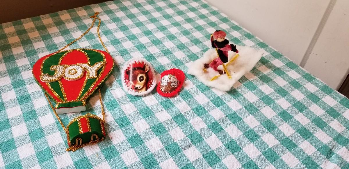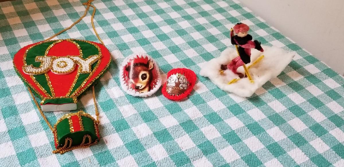 Lot 346: Vintage Christmas Slippers, Joy Air Balloon & Skier