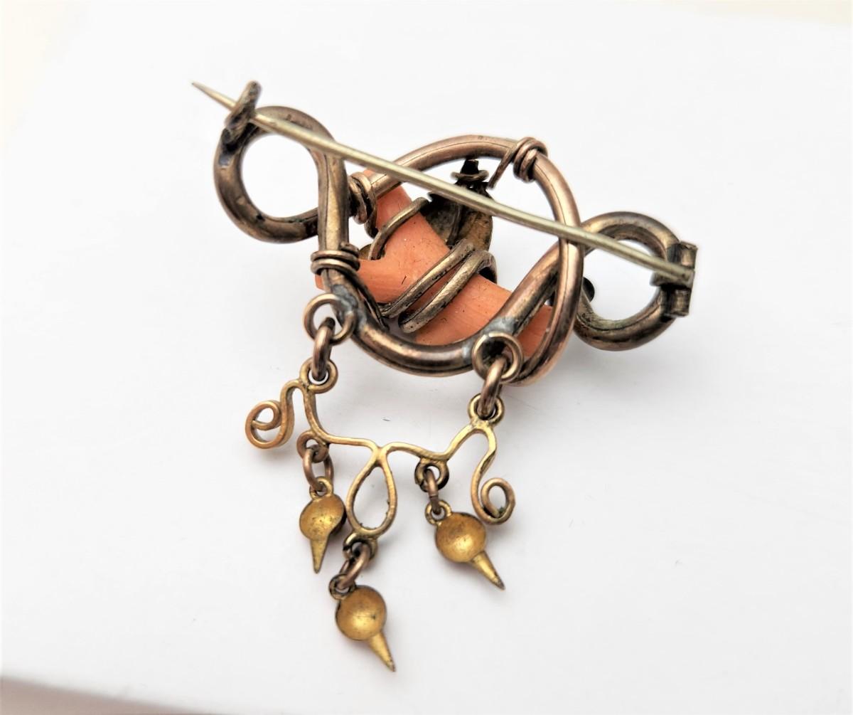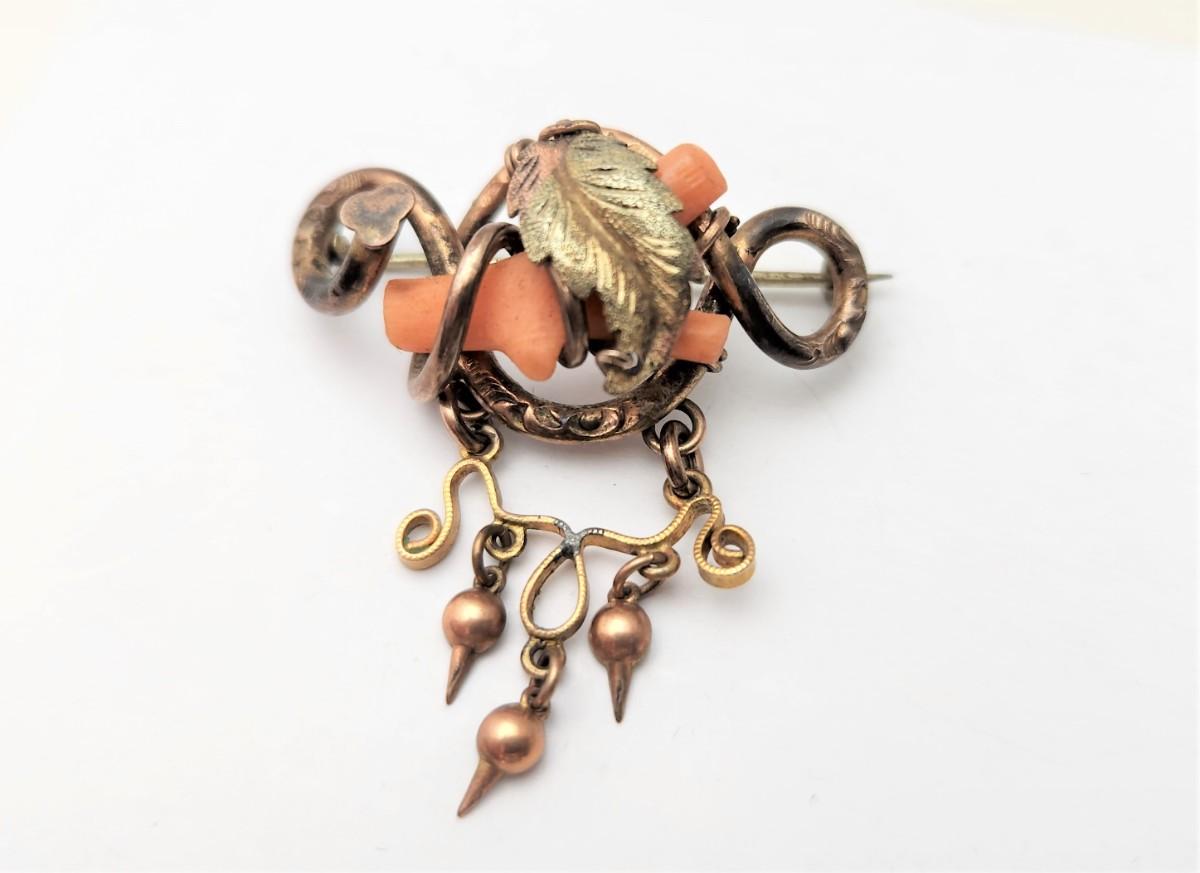 Lot #35 Antique Gold Filled Brooch with Natural Coral Accent