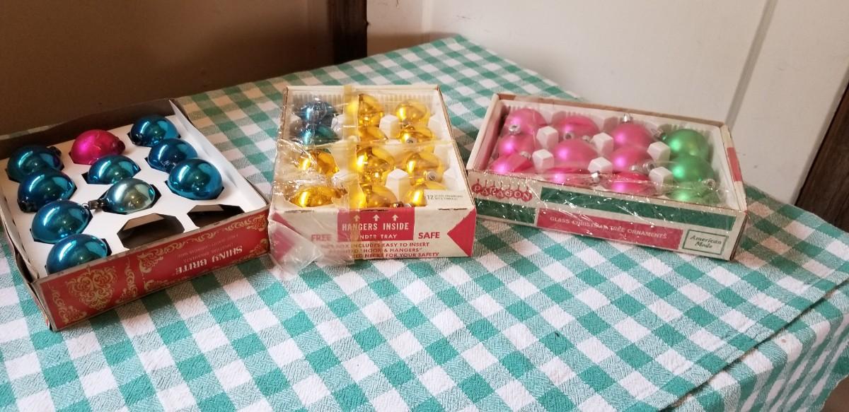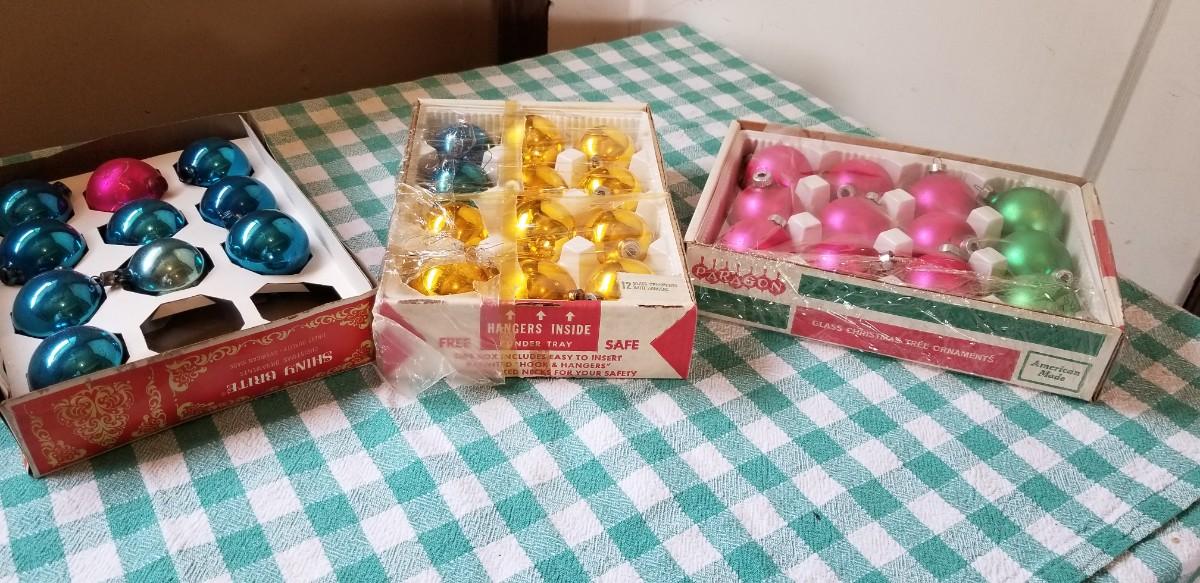 Lot 350: Vintage (3) Boxes of Shiny Brite Christmas Ball Ornaments