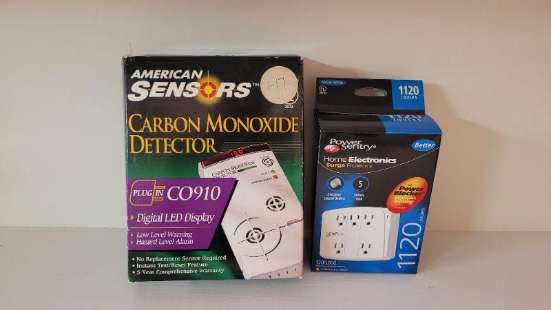 Lot 353: (2) New HOME SAFETY Finds - CARBON MONOXIDE + Surge Protector