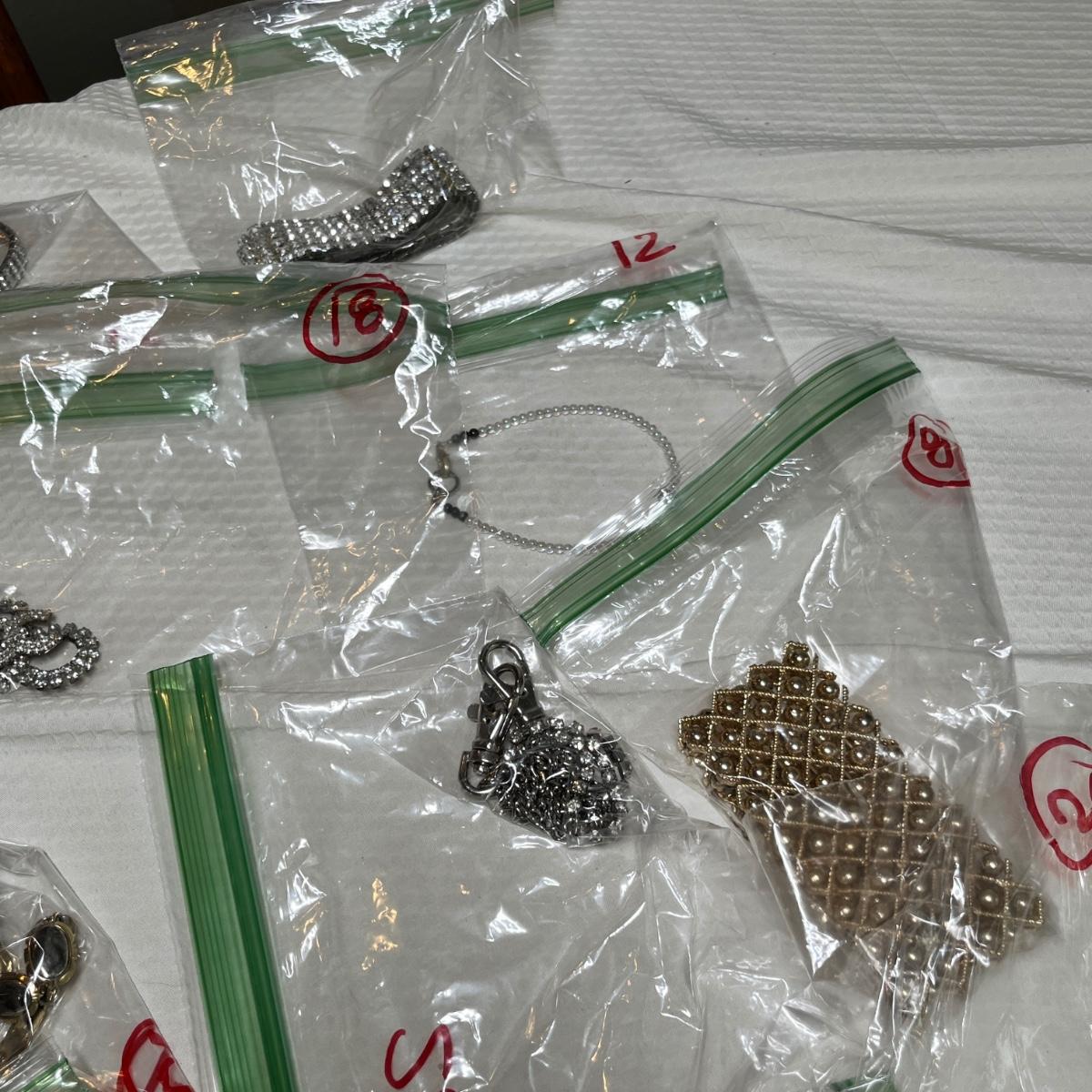 8. Sizes are approximate, you can estimate as our lot number signs are 3.5" long. Also we use an 18" & 36" measuring stick.  We try on certain things to do actual measurements. No guarantees on actual sizes, we try our best!