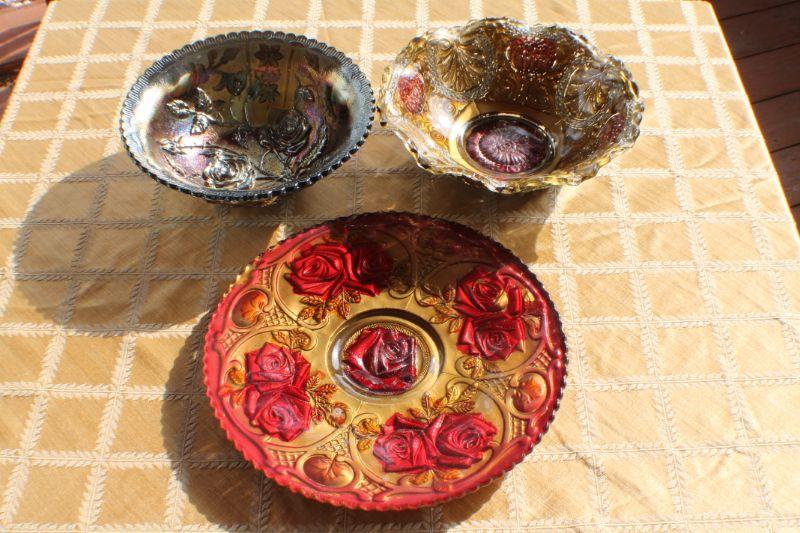 Lot #36: Group of (3) Colorful Floral Decorative Vintage Bowls and Plate