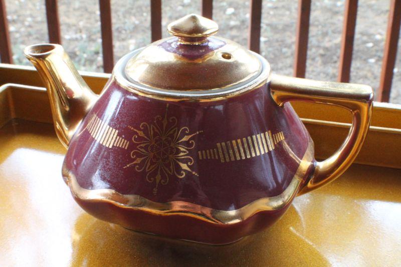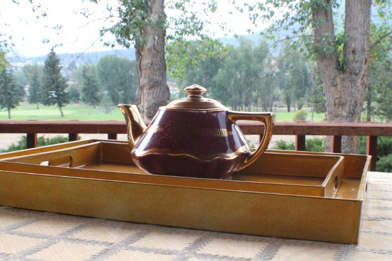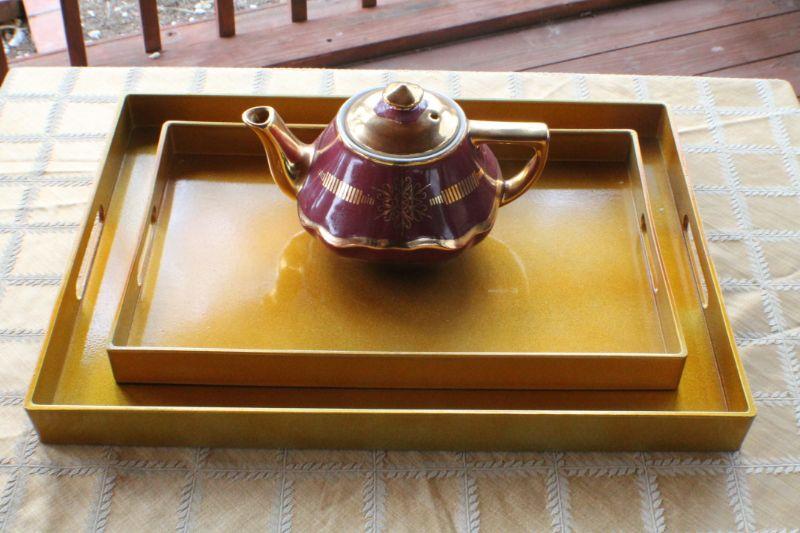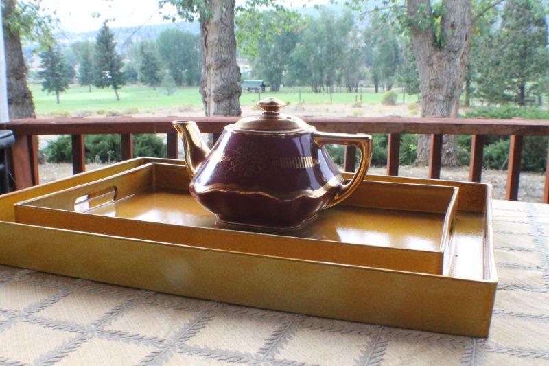 Lot #37: (2) Pier 1â„¢ Serving Trays Gold w/ HALLâ„¢ 6-Cup Teapot