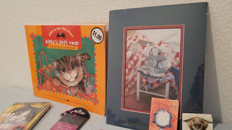 Lot 37: Assorted New CAT THEME Collectibles - Books and Magnets