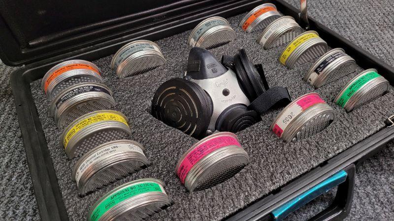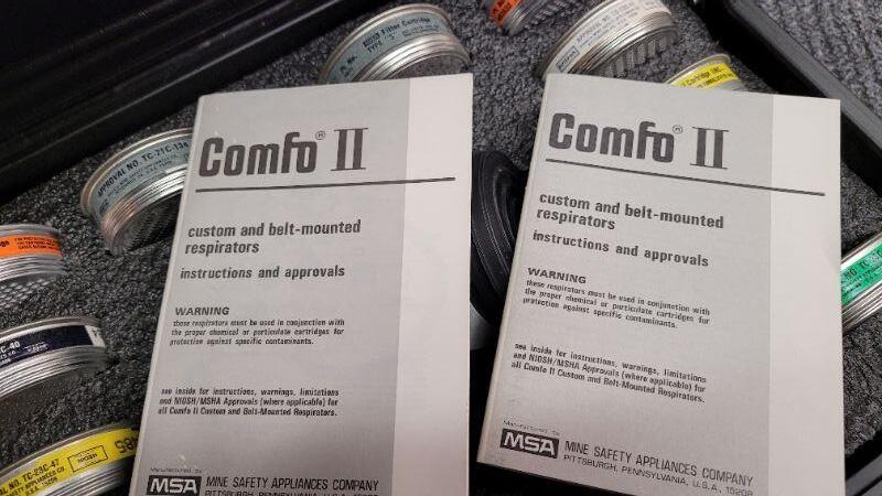 Lot 378: Vintage COMFO II Respirator Kit w/ all Original Canisters