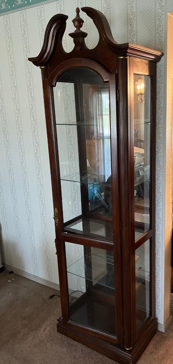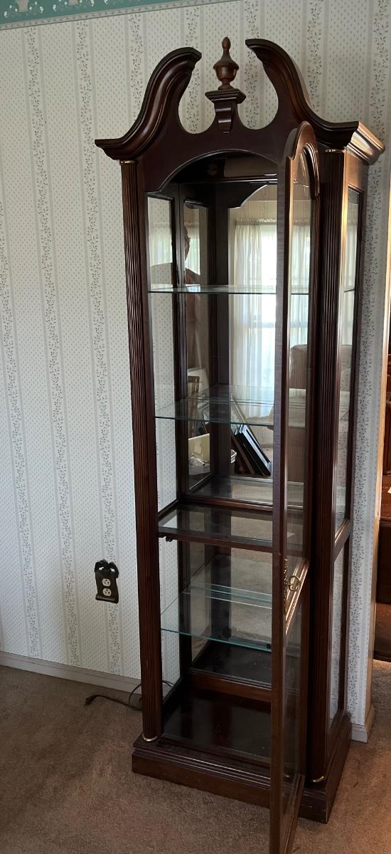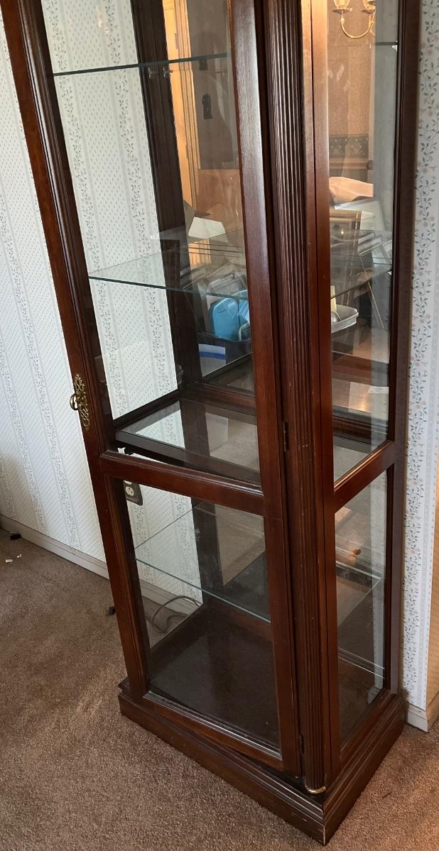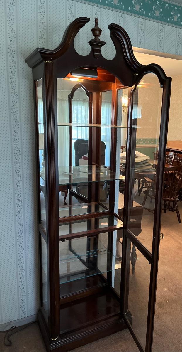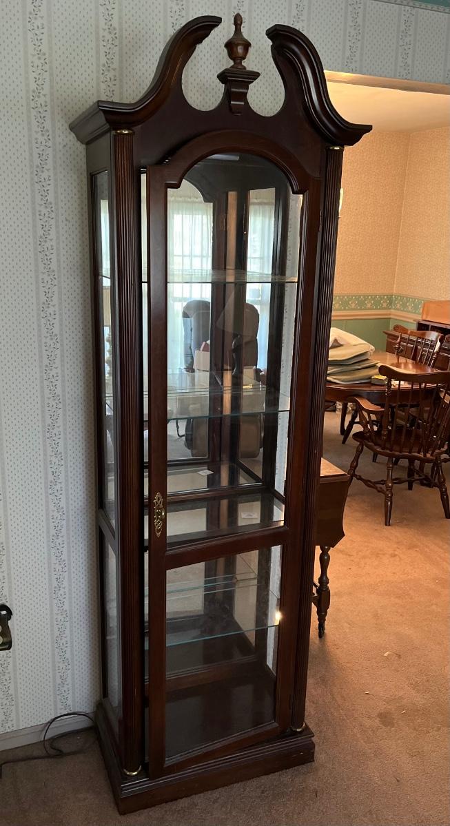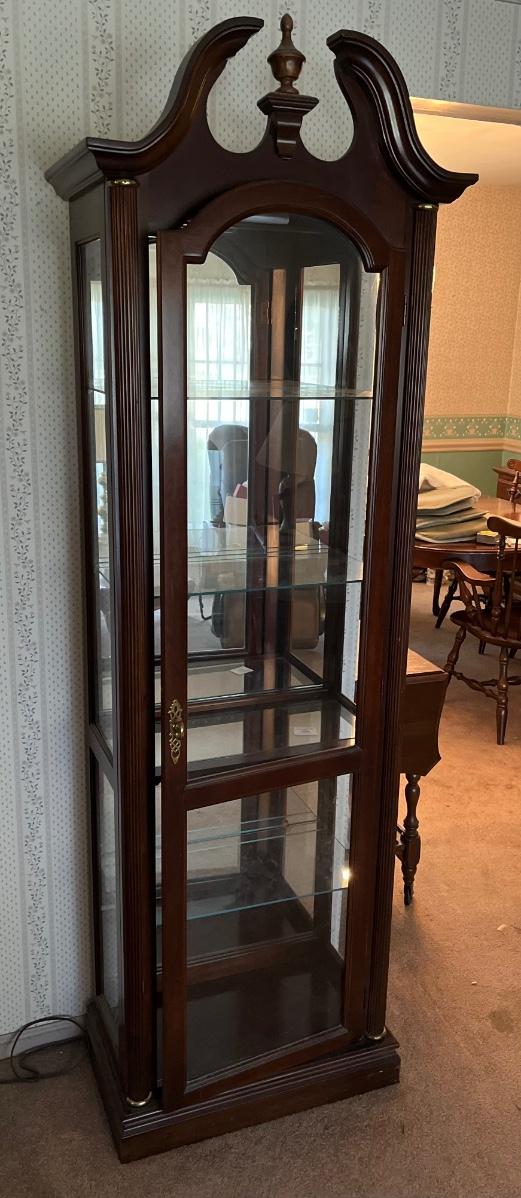 LOT 387L: Lighted Wood and Glass Curio Cabinet
