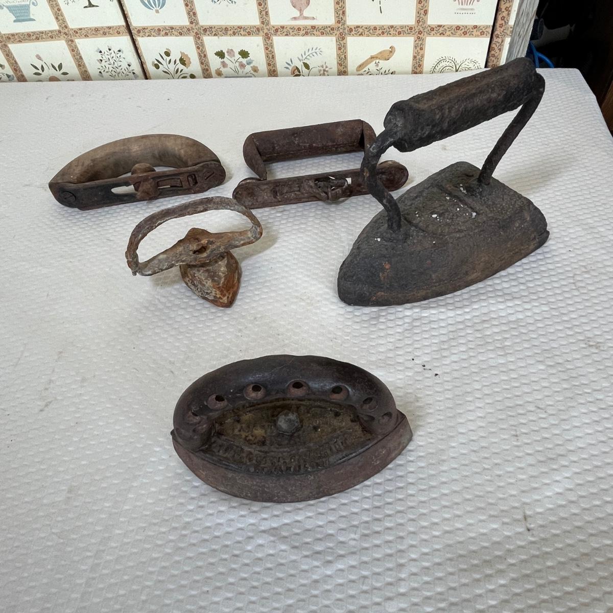 Antique sad irons & pieces