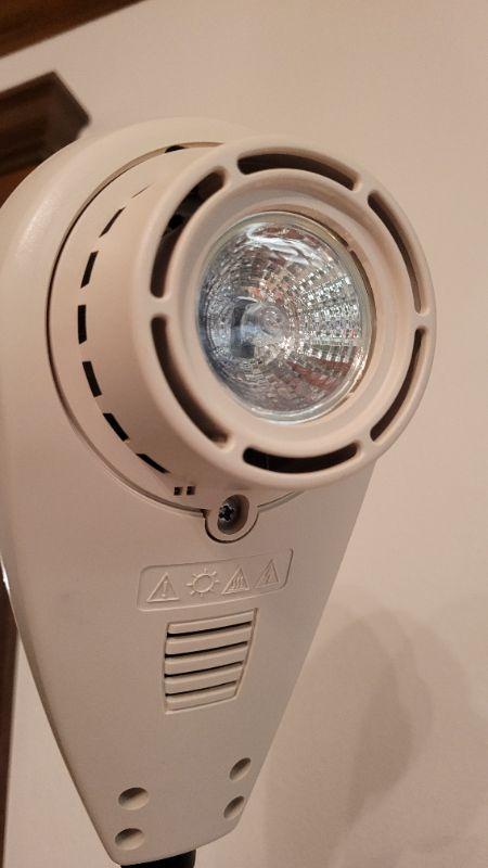 Specially redesigned light head keeps luminaire cool to the touch - even during multiple exams. Lamp has offset at 12 degree angle relative to the luminaire housing, allowing an unobstructed view of the field of interest.