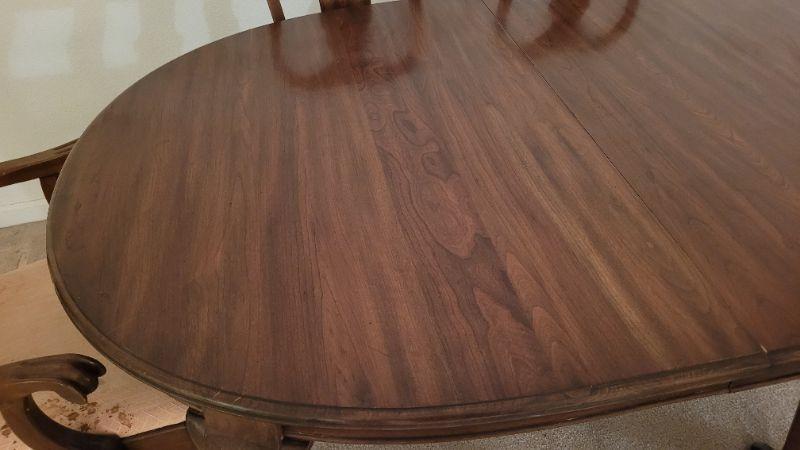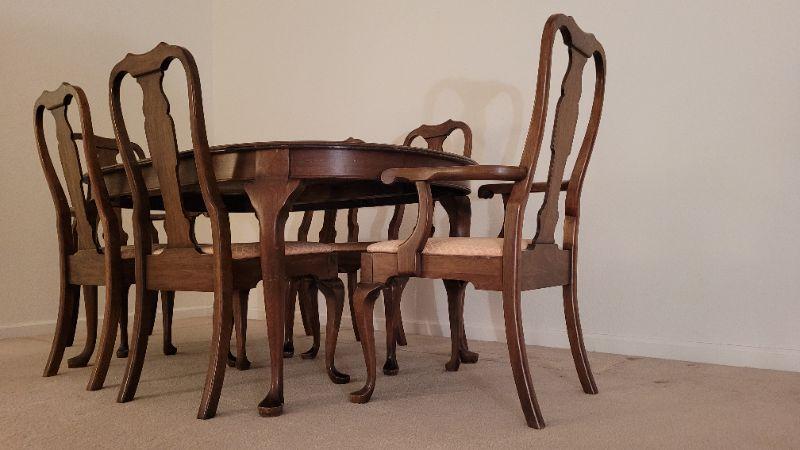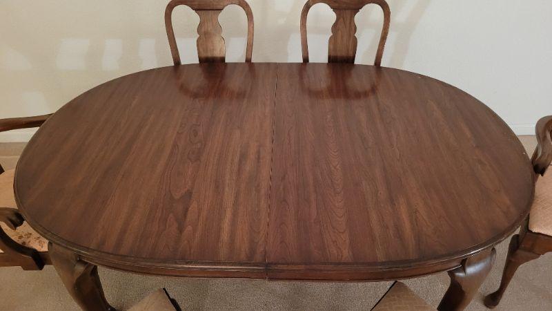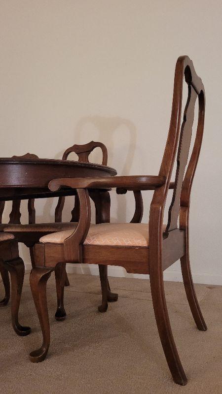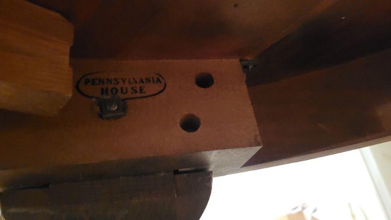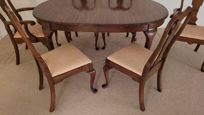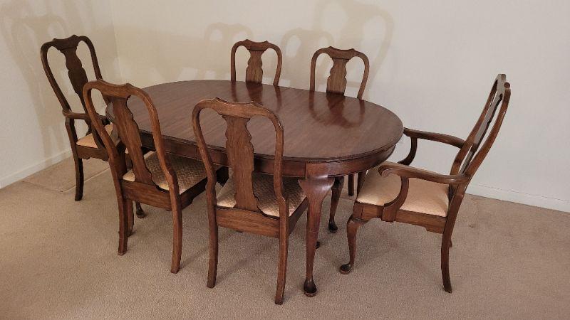 Lot 43: Vintage Pennsylvania House Dining Table (3 Leaves and 7 chairs) **More Info in Description