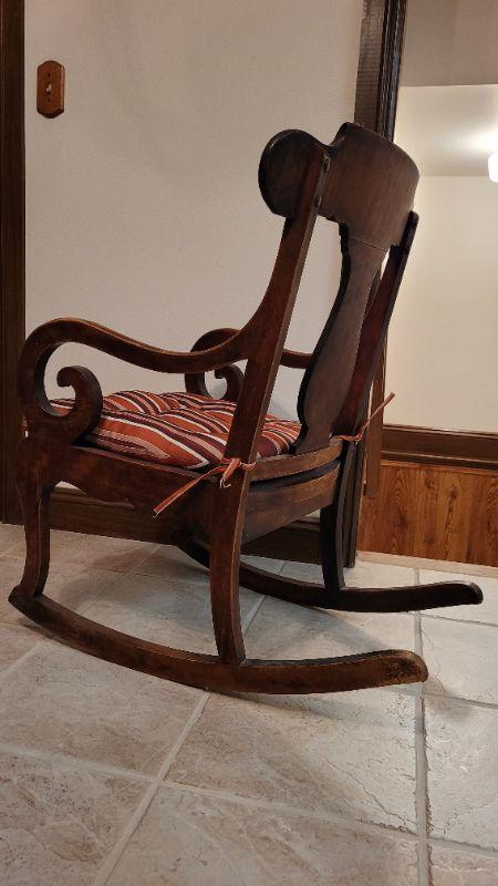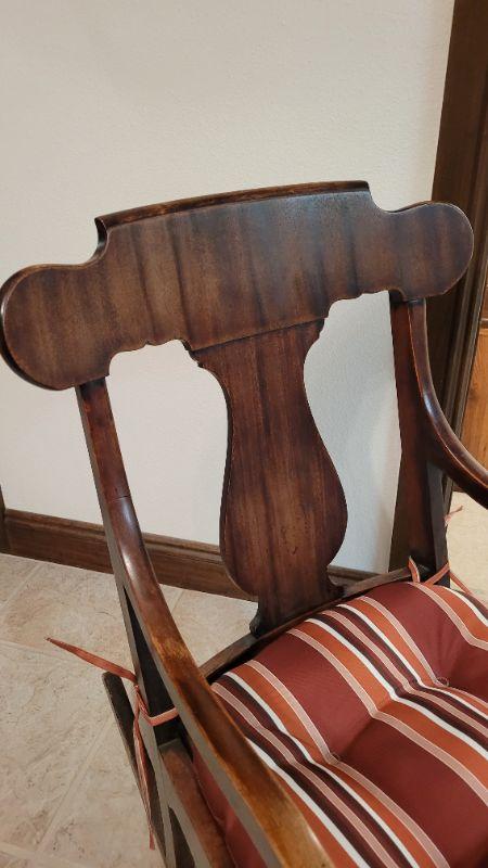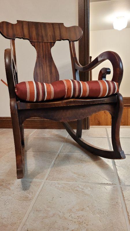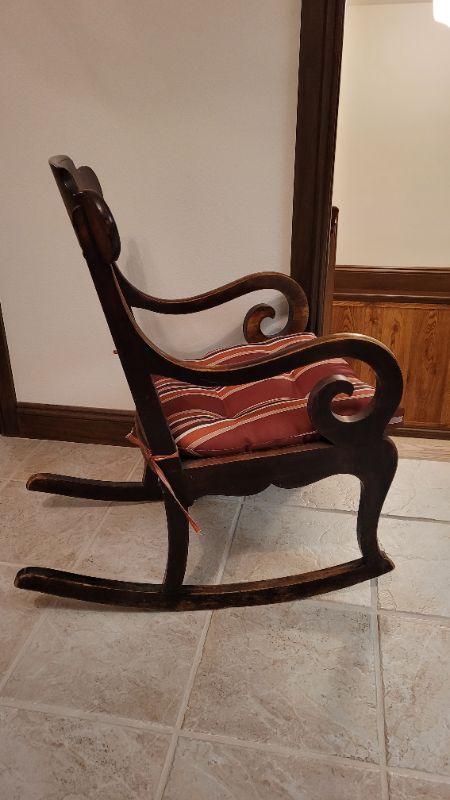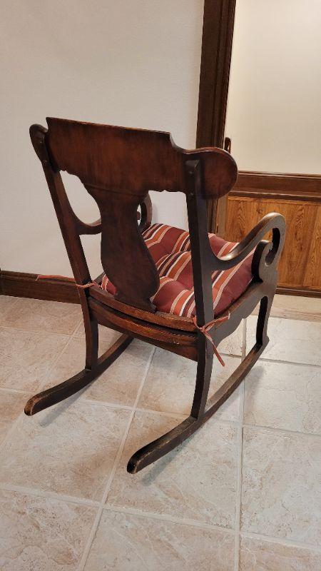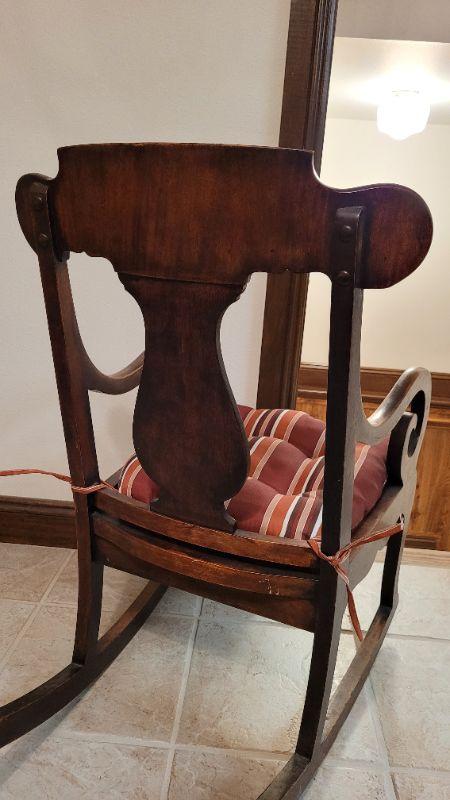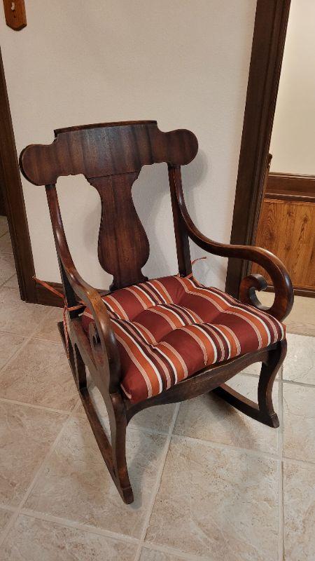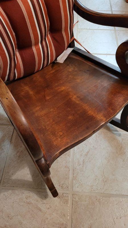 Lot 437: Vintage Wood Rocking Chair w/ Padded Cushion