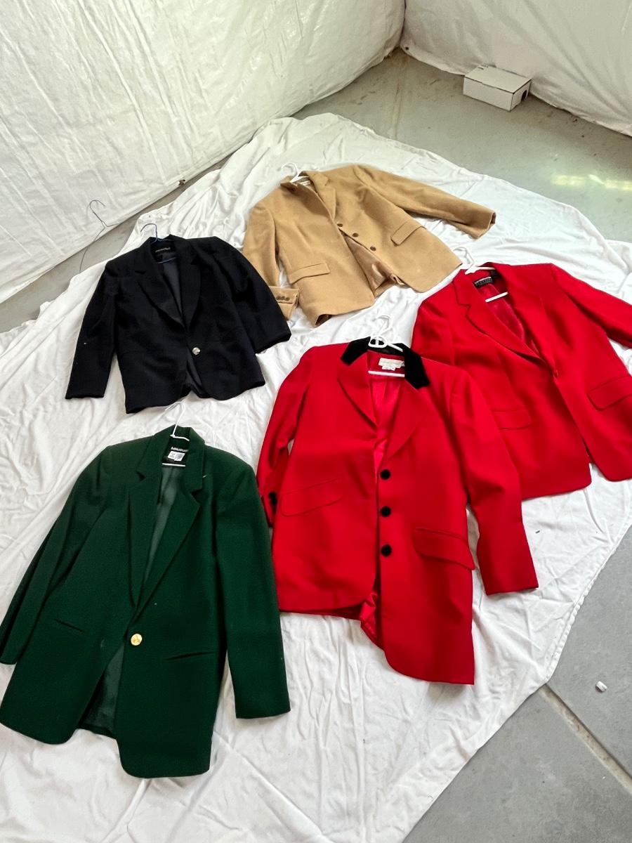 Lot 142 5 blazers - camel, red, red & black, forest green, navy