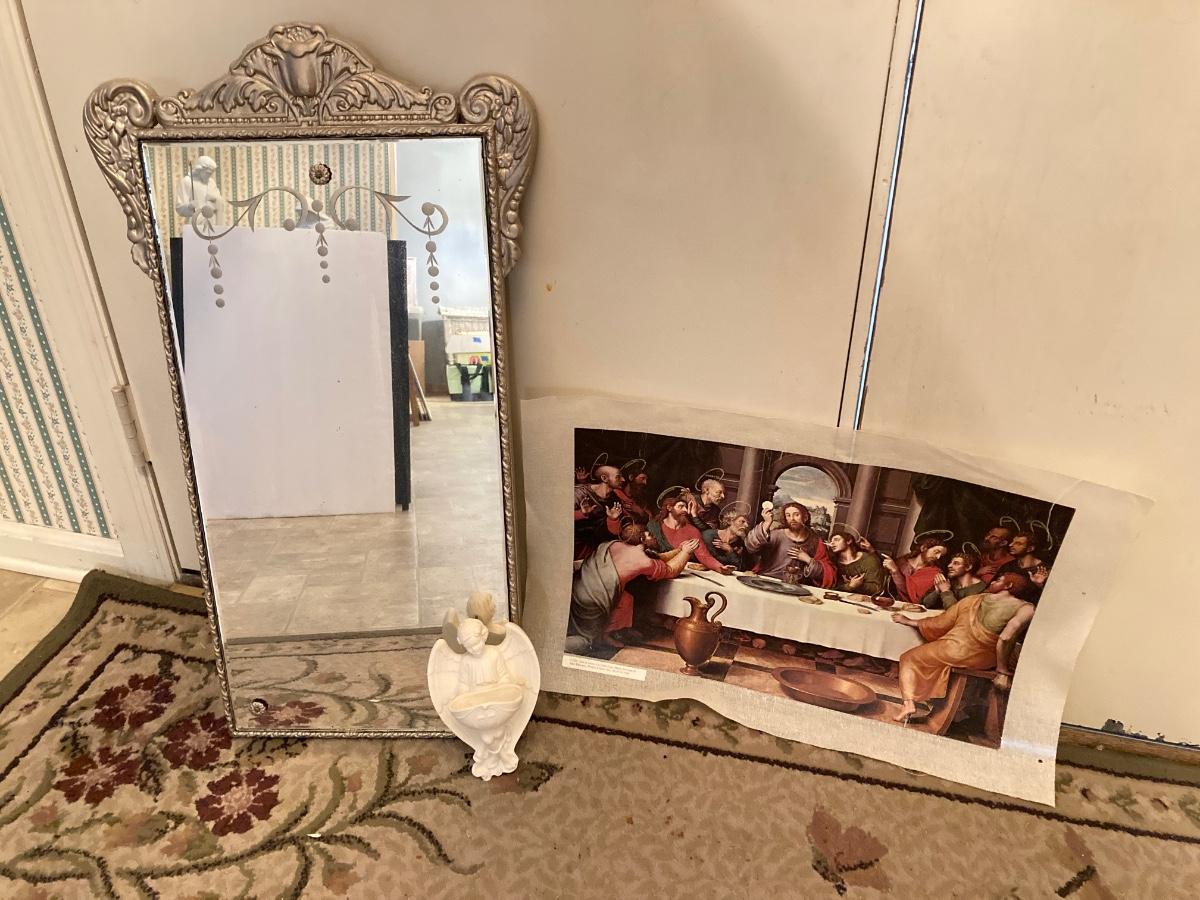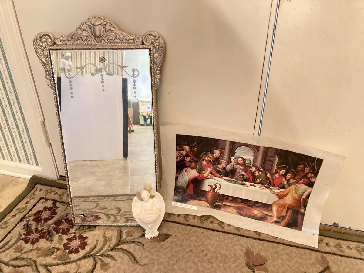 LOT 452L: Decorative Wooden Painted Mirror and Religious Wall Decor