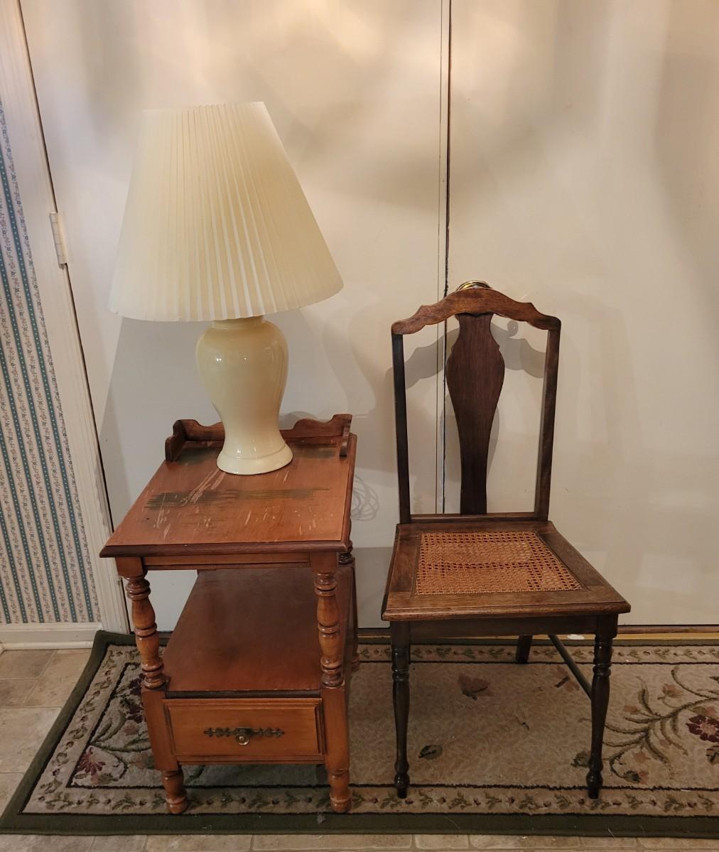 LOT 534L: Vintage Chair, End Table & Lamp