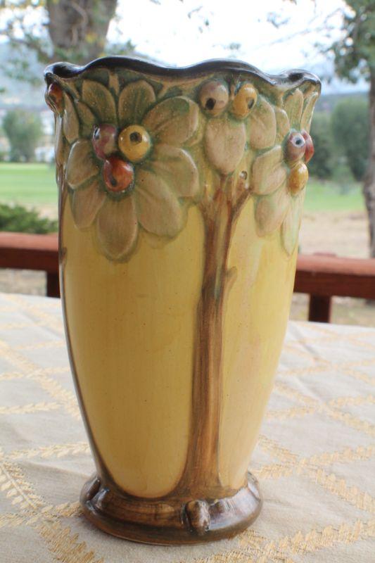 Lot #55: Vintage Hand Painted Mid Century Modern Tree Theme Vase