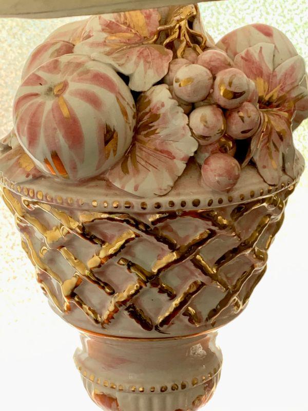 Capodimonte porcelain table lamp. Pink and gold.
