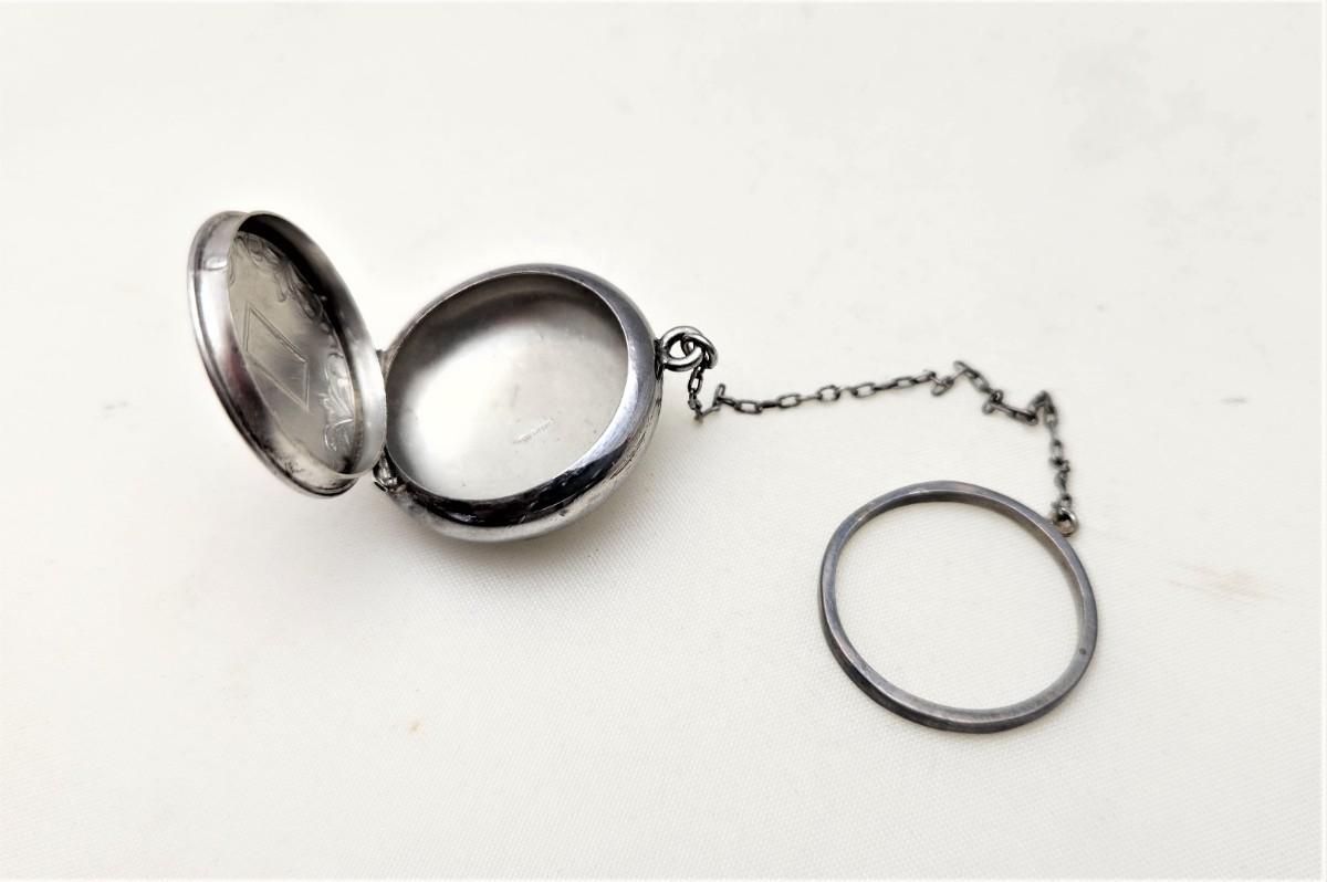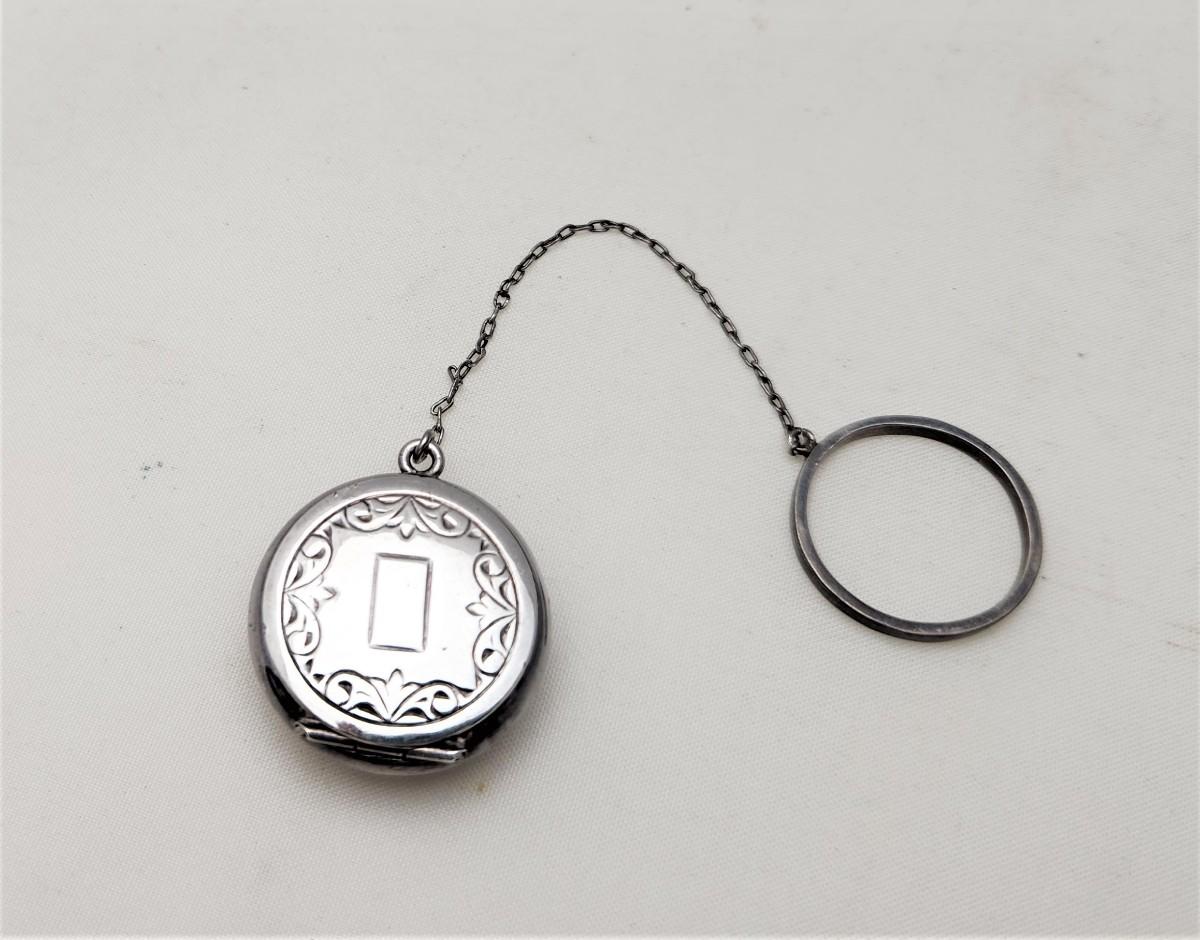 Lot #6  Sterling Silver Chatelaine Locket, Ashtray, Pillbox - you be the judge
