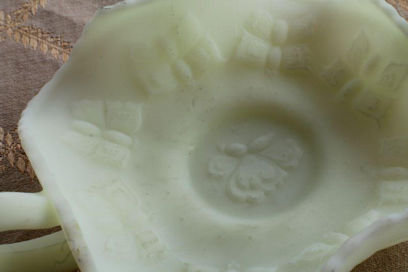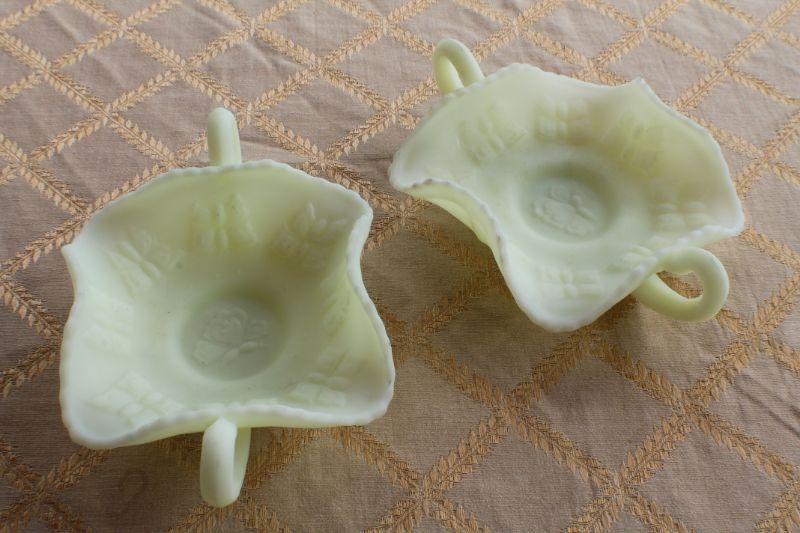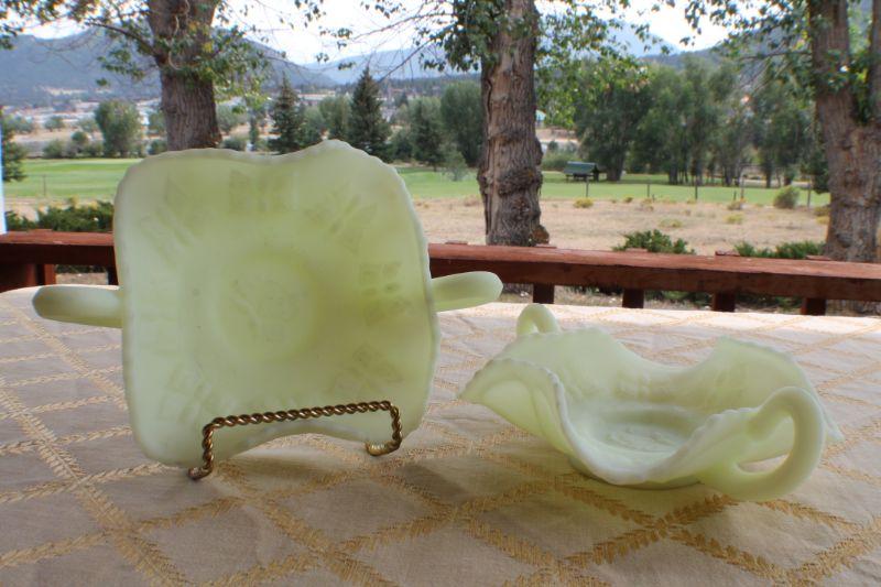 Lot #62: Pair of Vintage Green FENTONâ„¢ Glass Dishes Matching