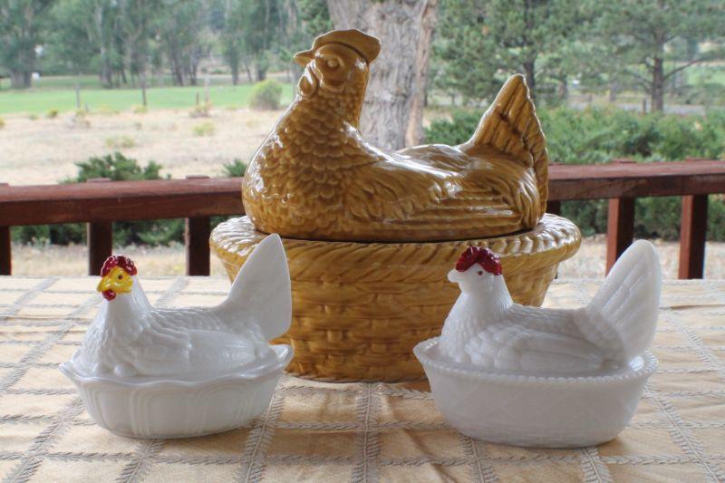 Lot #7: Group of (3) Country Rooster Dishes w/ Lids