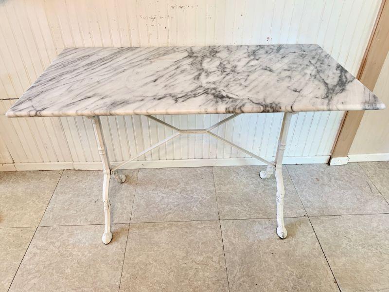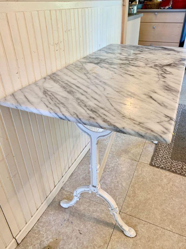 LOT 70 MARBLE TOP TRESTLE TABLE CAST IRON BASE