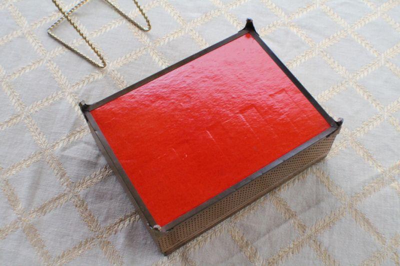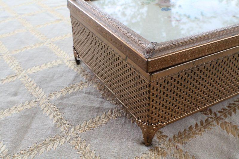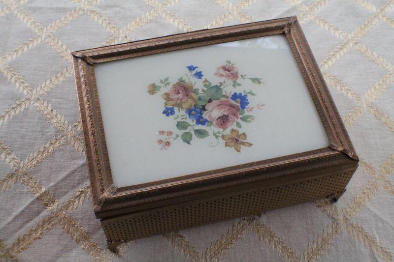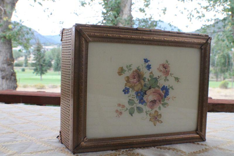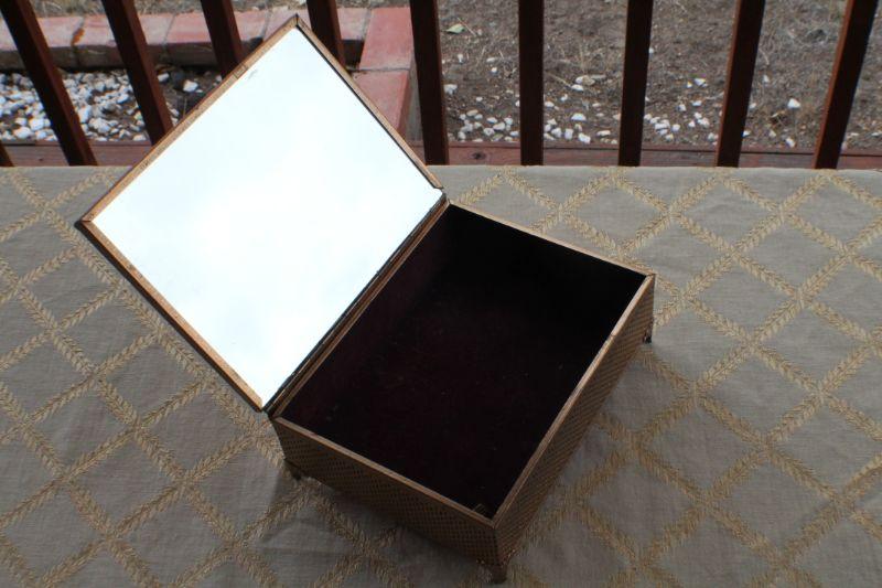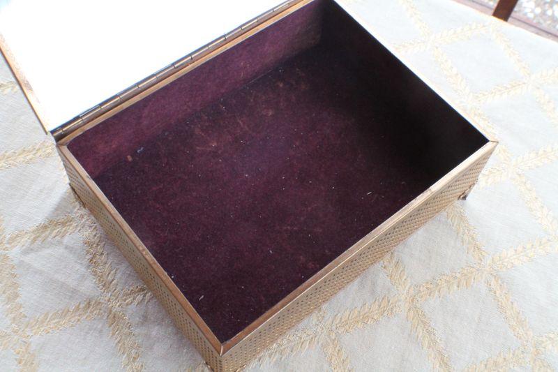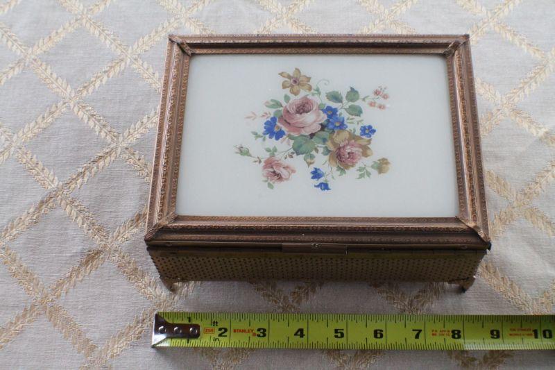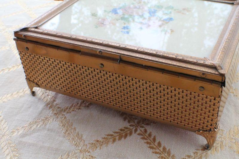 Lot #71: Vintage Mid Century Modern Flower Themed Jewelry/Trinket Box Gold Tone Metal Case