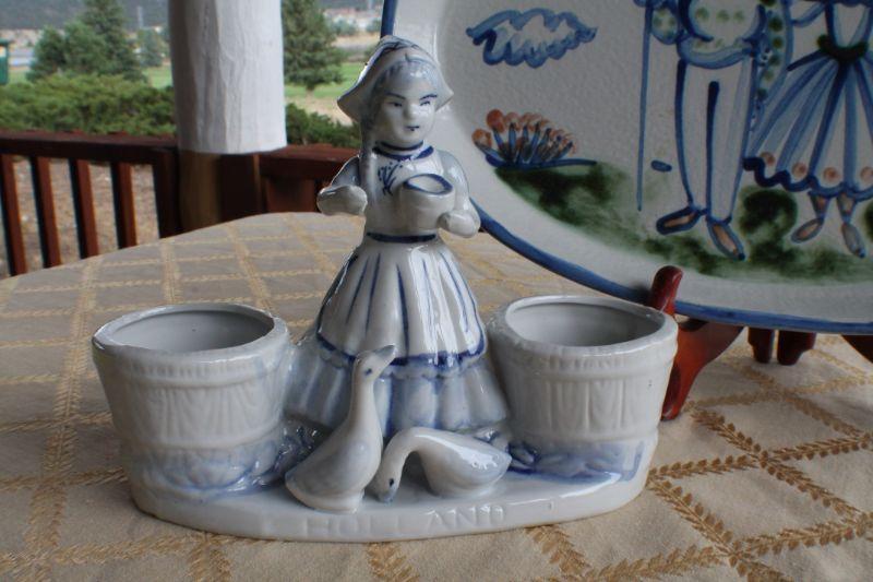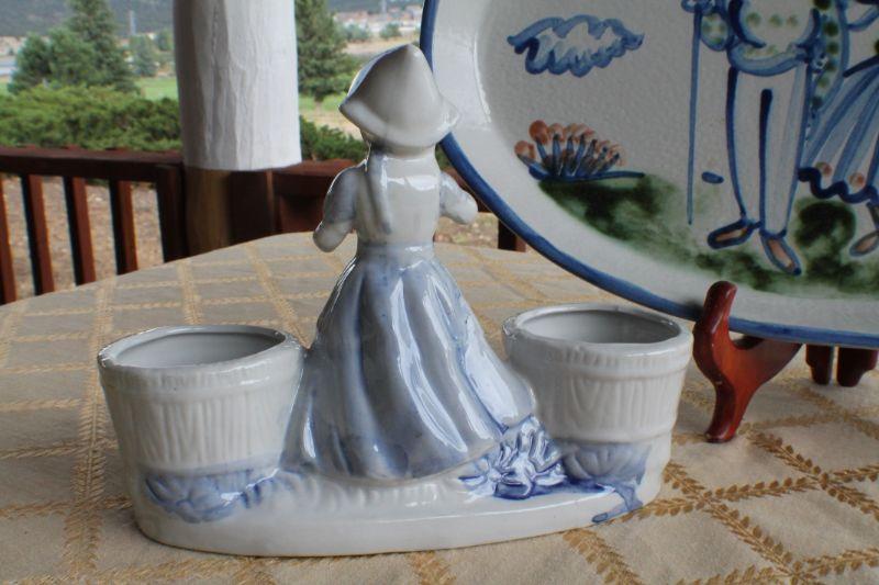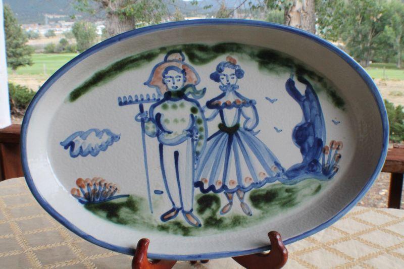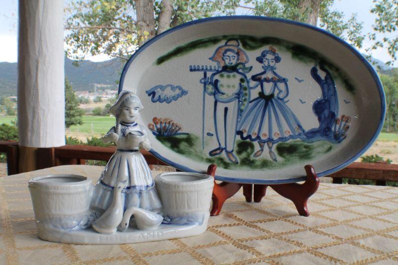 Lot #75: Porcelain BLOOM RITEâ„¢ Figure and Stoneware SIGNED Hand Painted Serving Dish