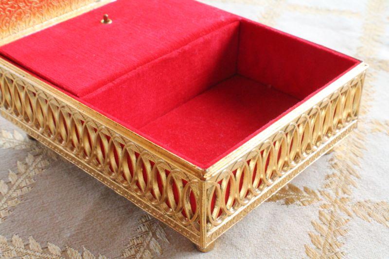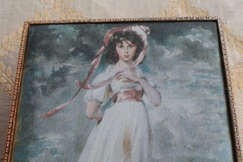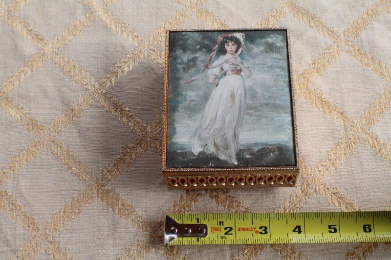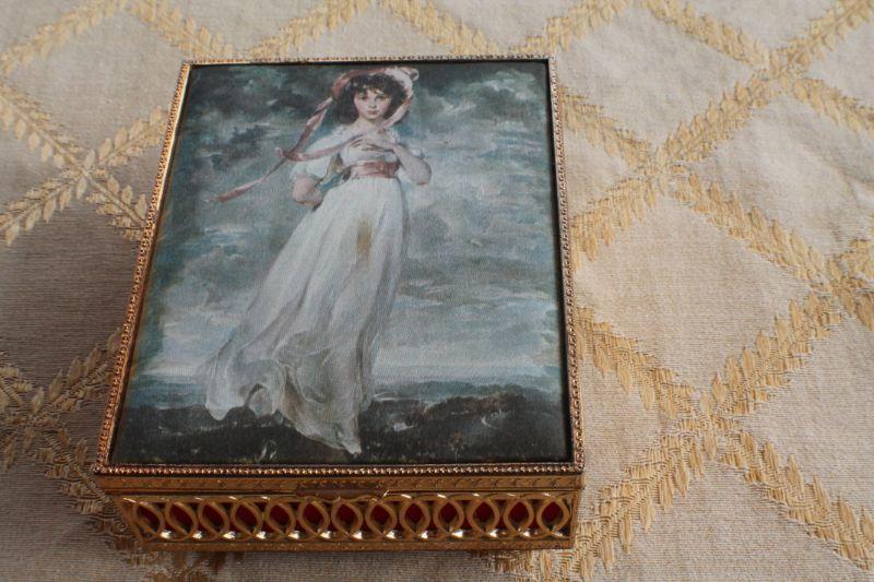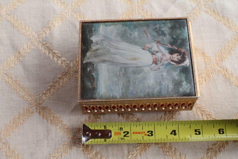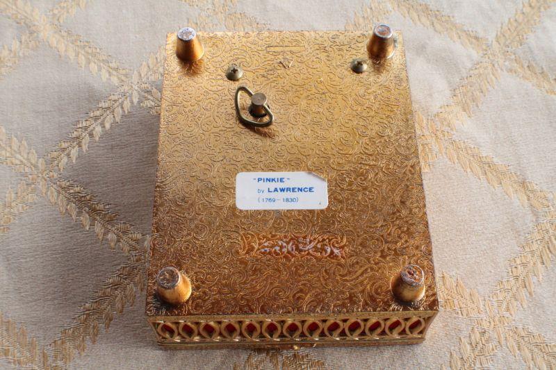 Lot #78: Small Vintage Mid Century Modern JAPAN Padded Fabric Picture Top Jewelry/Trinket MUSIC Box PINKIE by Lawrence Tested A+