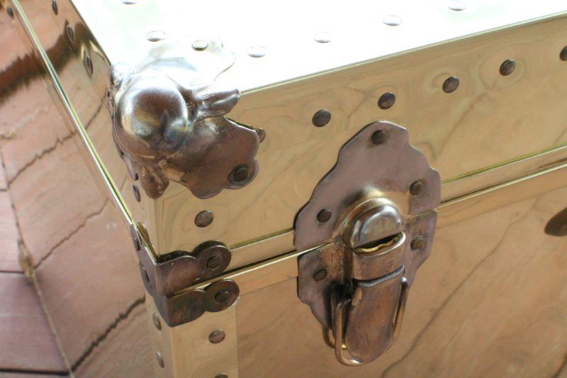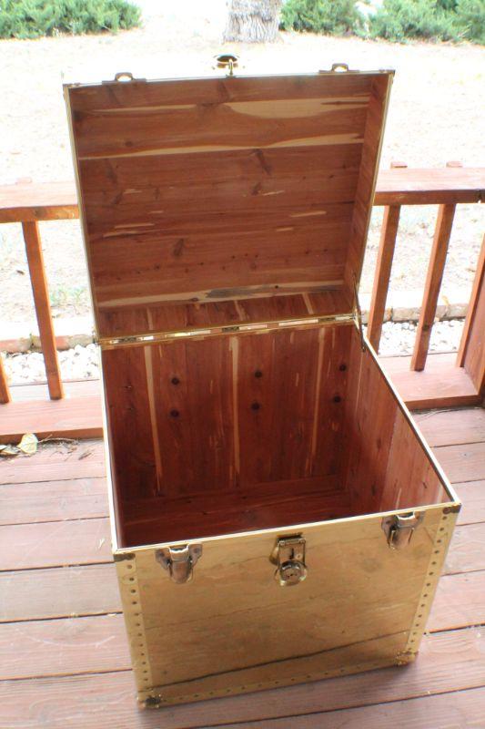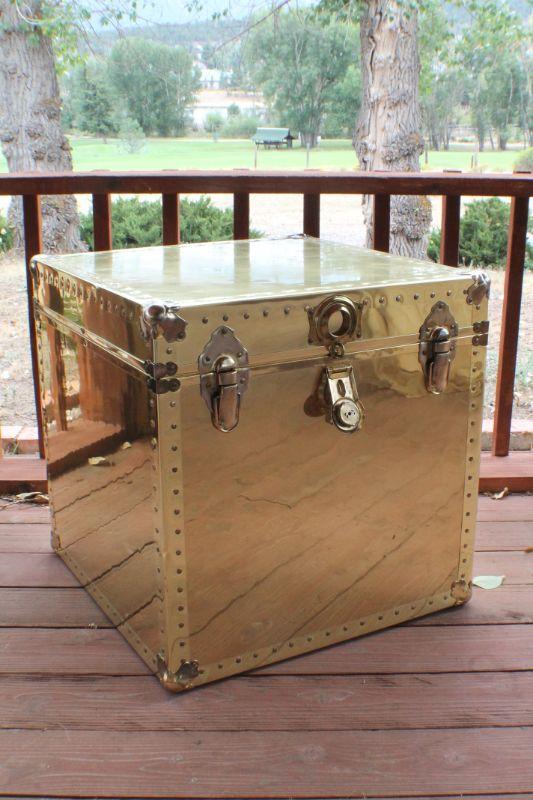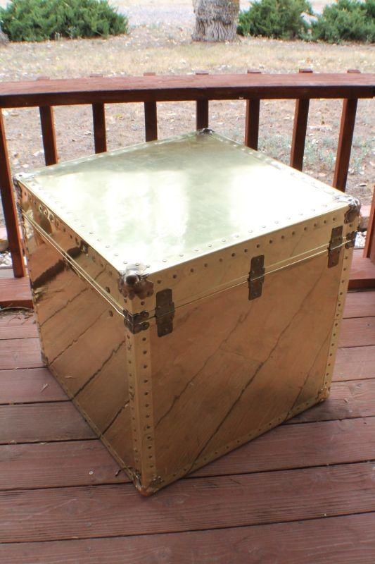 Lot #81: Vintage Mid Century Modern 22" Square Brass Cedar Chest w/ Key and Lock Feature (22" x 22" x 22")
