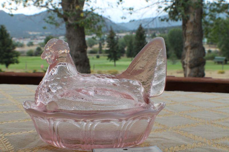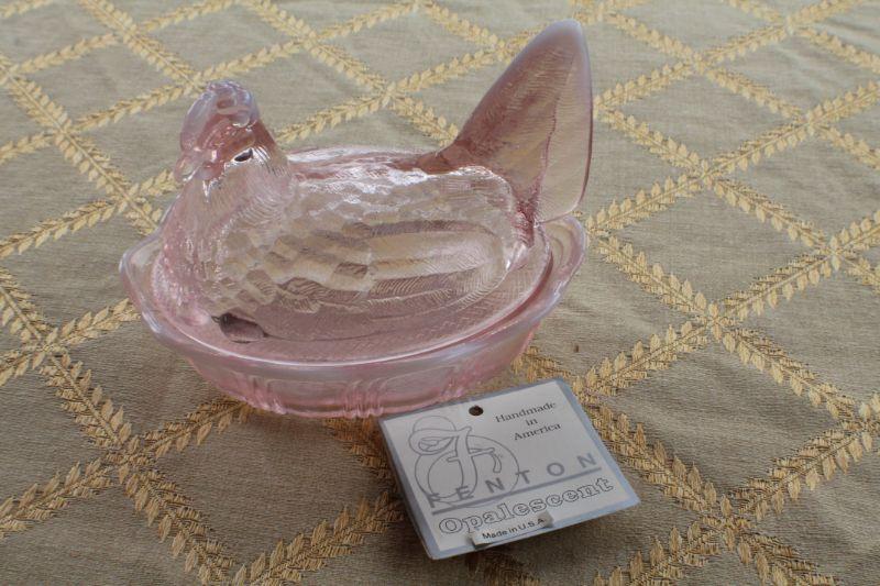 Lot #83: Vintage FENTONâ„¢ Pink Opalescent Covered Dish w/ Original Card