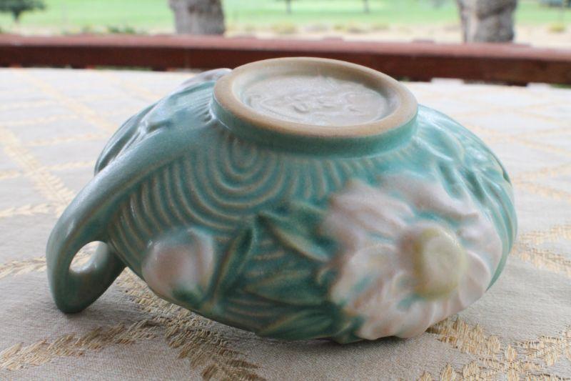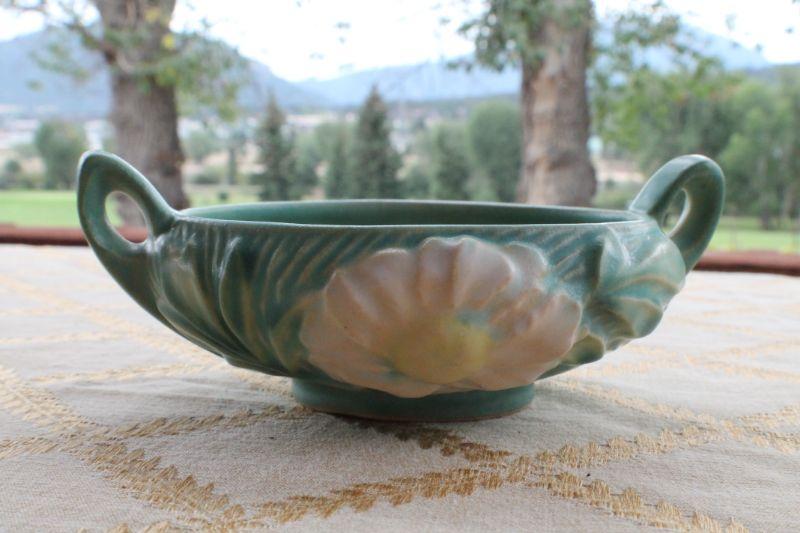Lot #86: Large ROSEVILLEâ„¢ Flower Themed Bowl w/ Handles