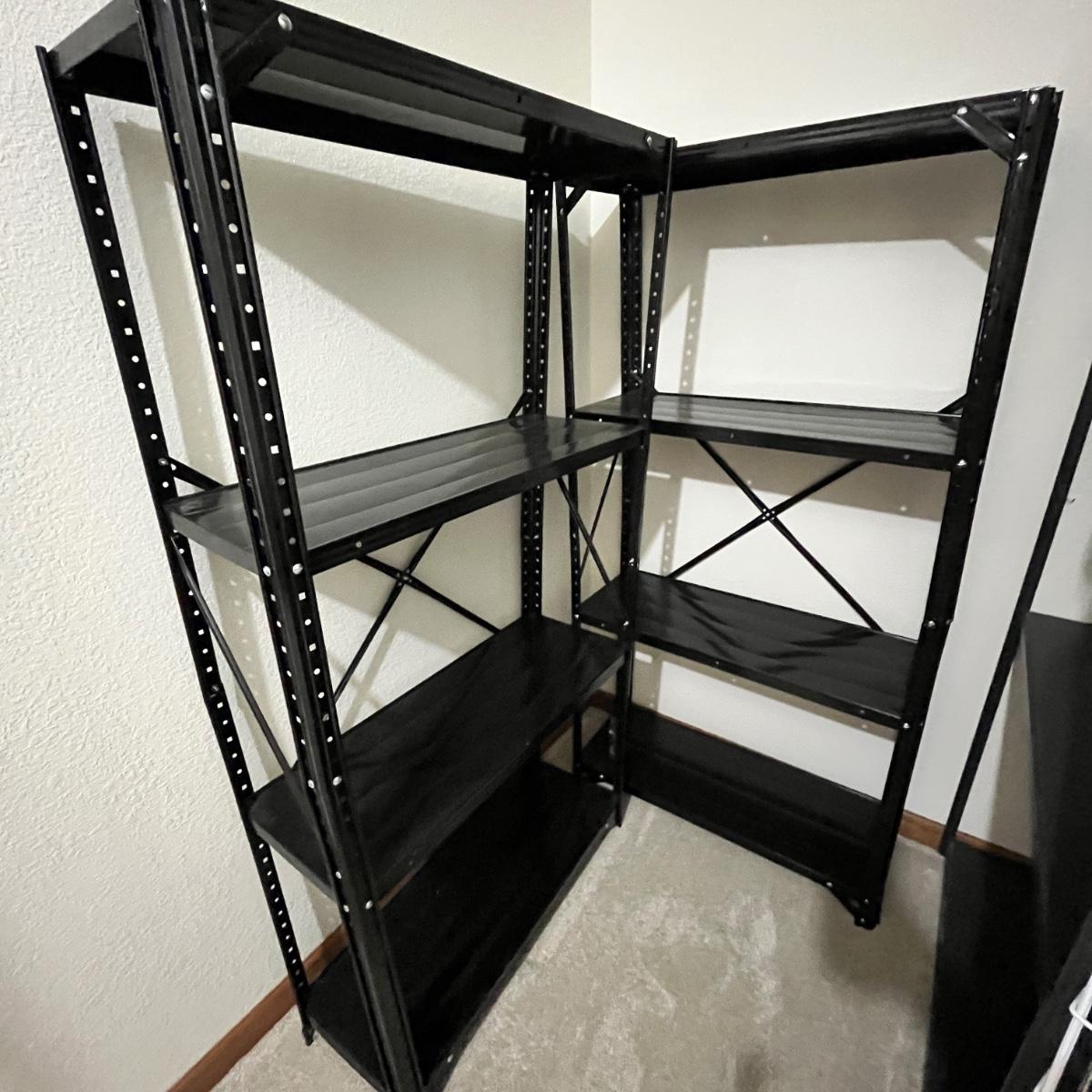 Lot 9 Standard sized Black Steel Shelves Group of 2