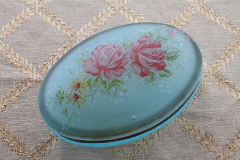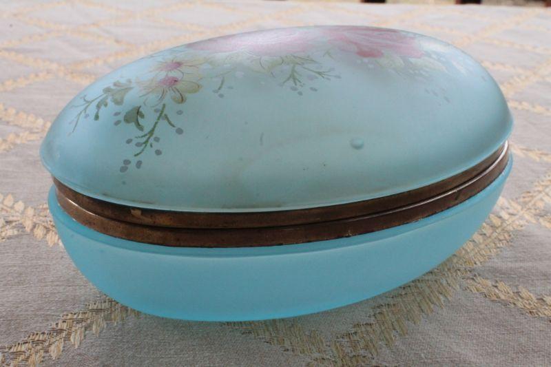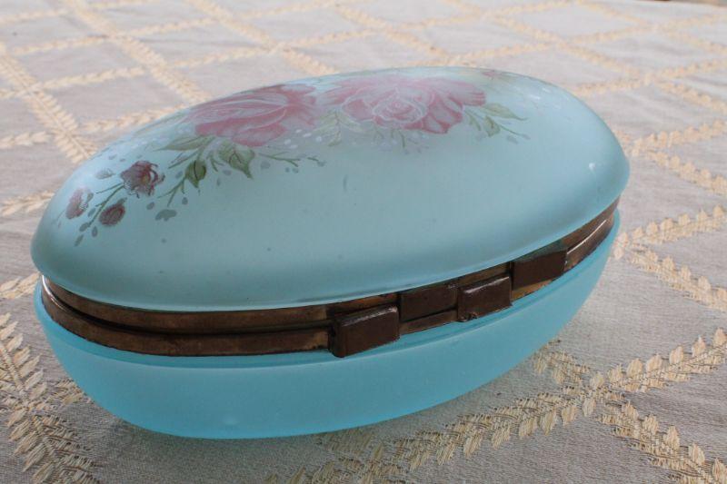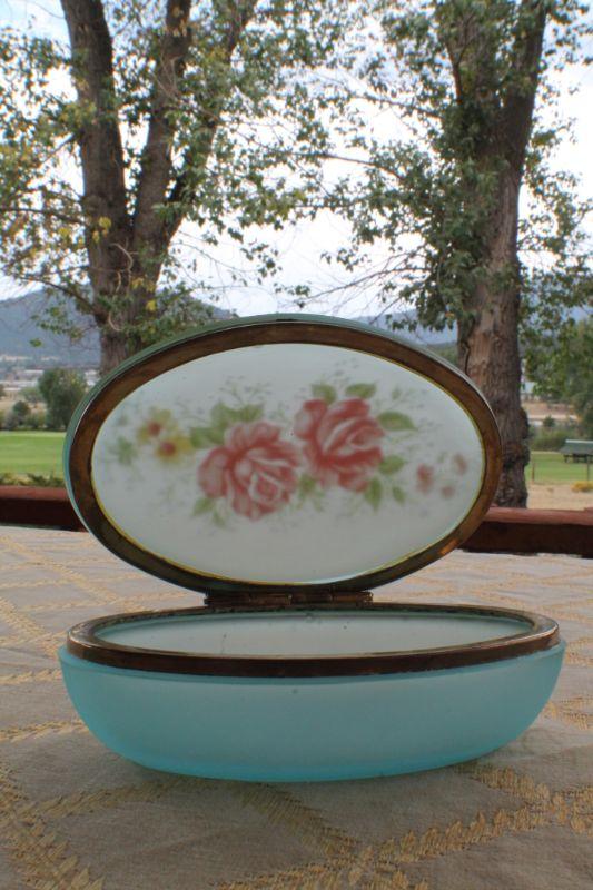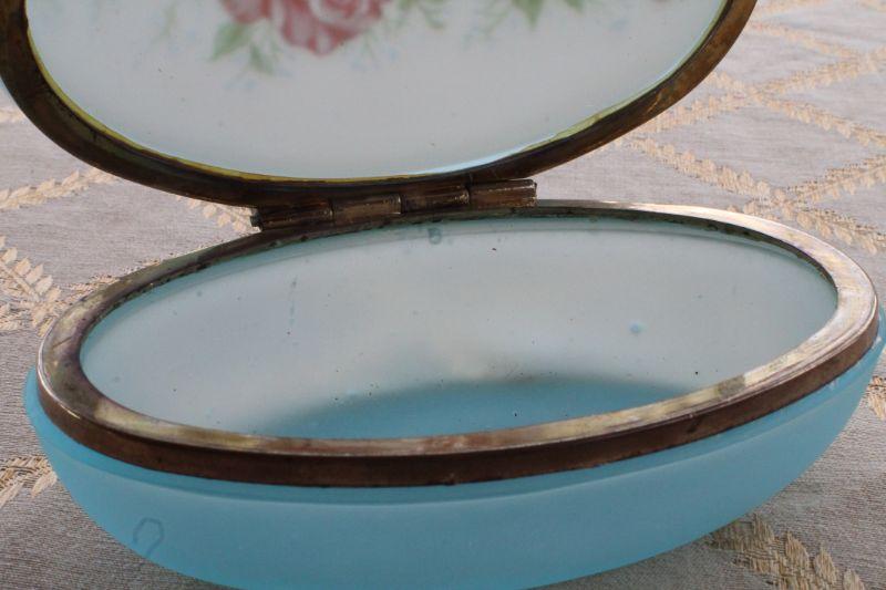 Lot #90: Vintage Blue Art Glass Oval Jewelry/Trinket Box
