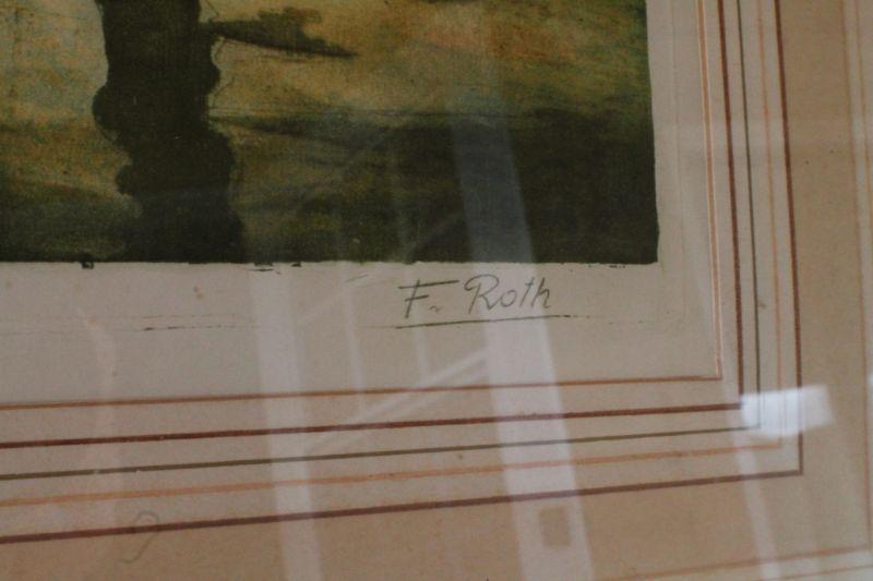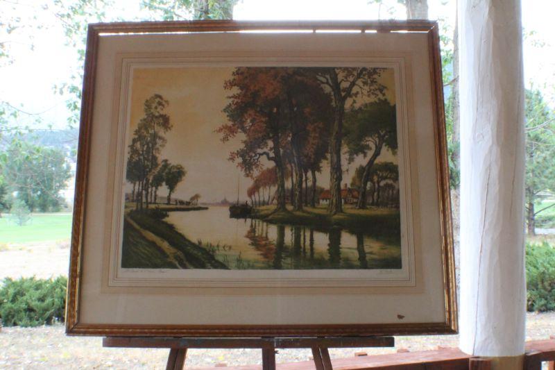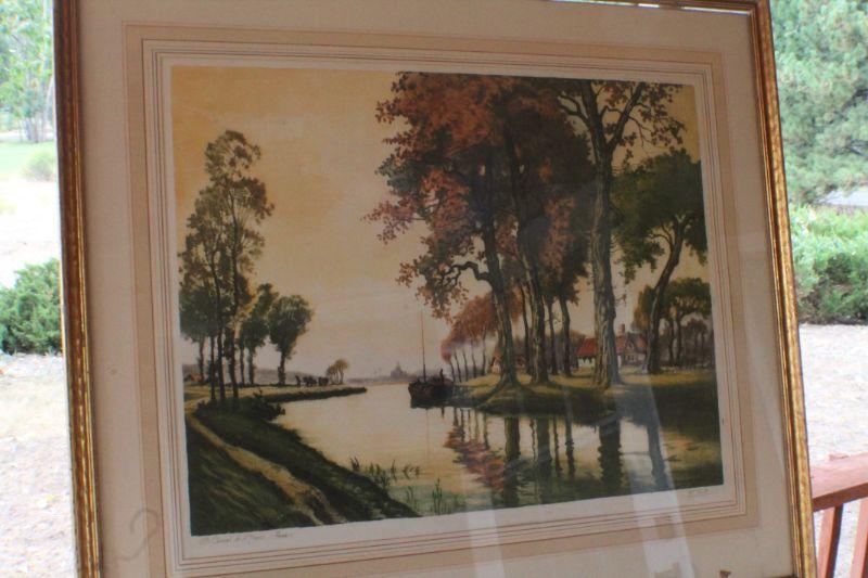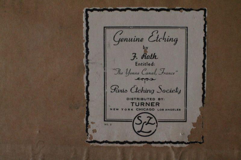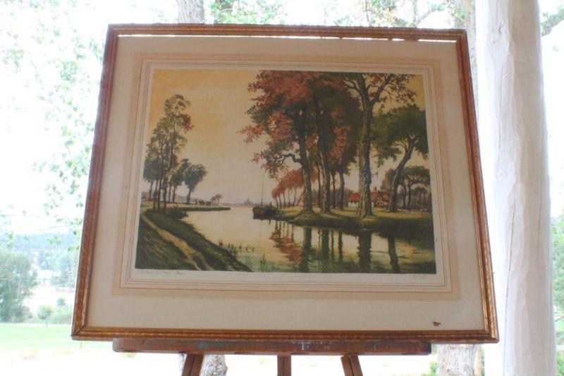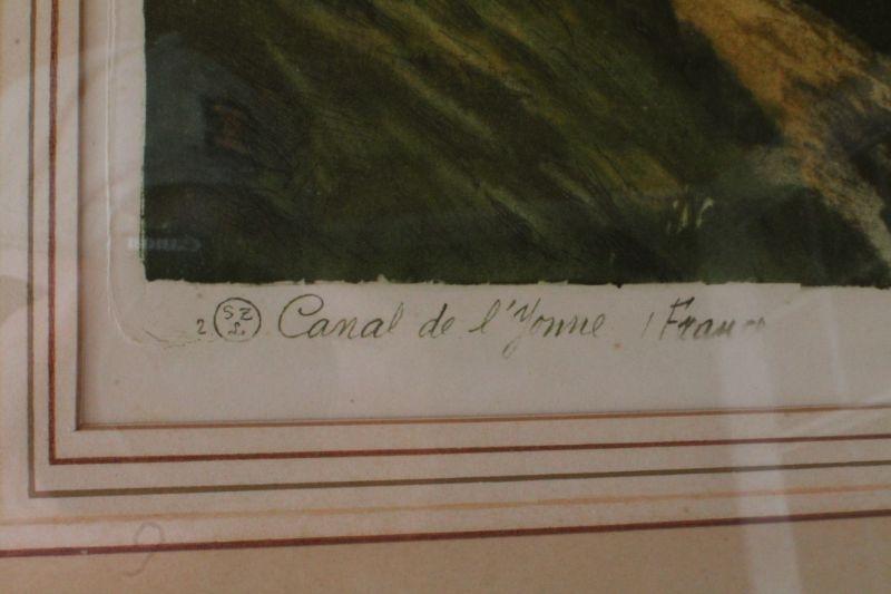 Lot #91: Vintage SIGNED Etching by F. Roth "The Yonne Canal, France"