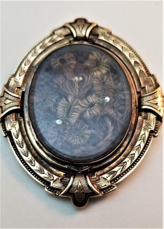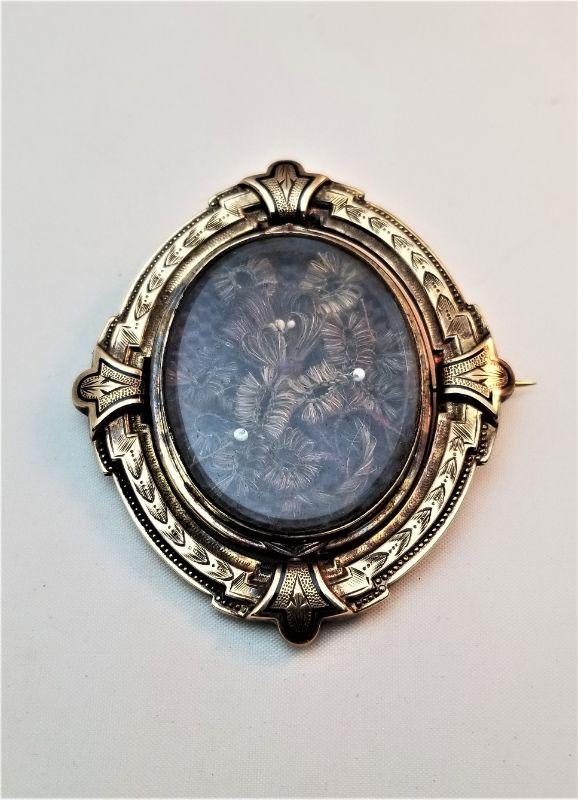 Lot #91  Fantastic Antique Victorian Mourning Hairwork Brooch in Swivel Frame - a beauty
