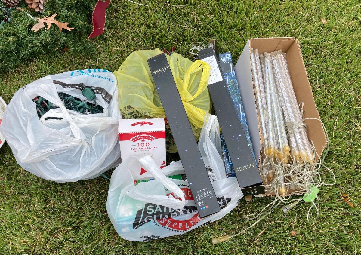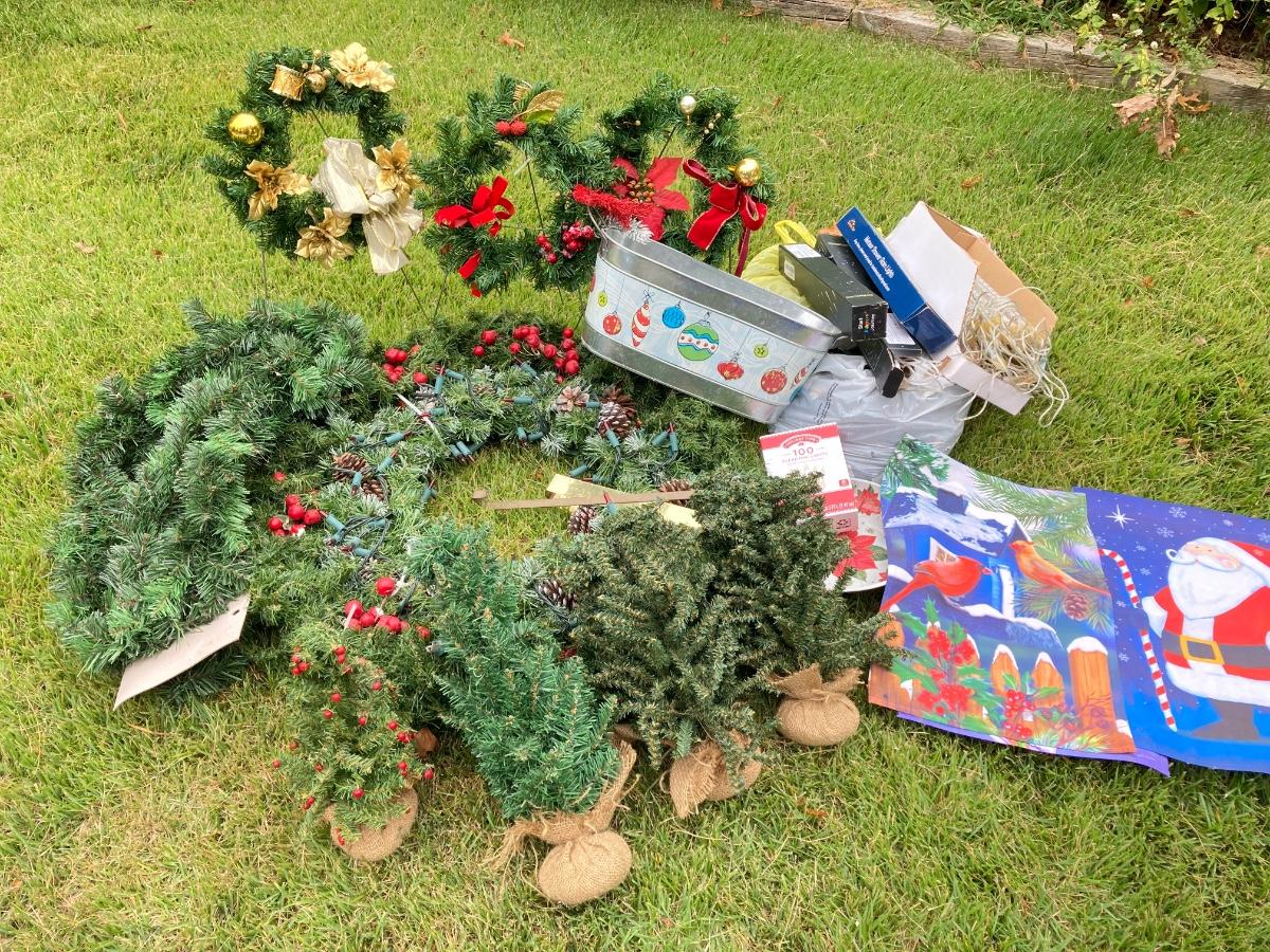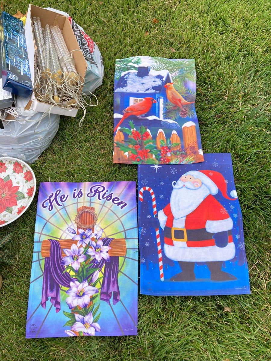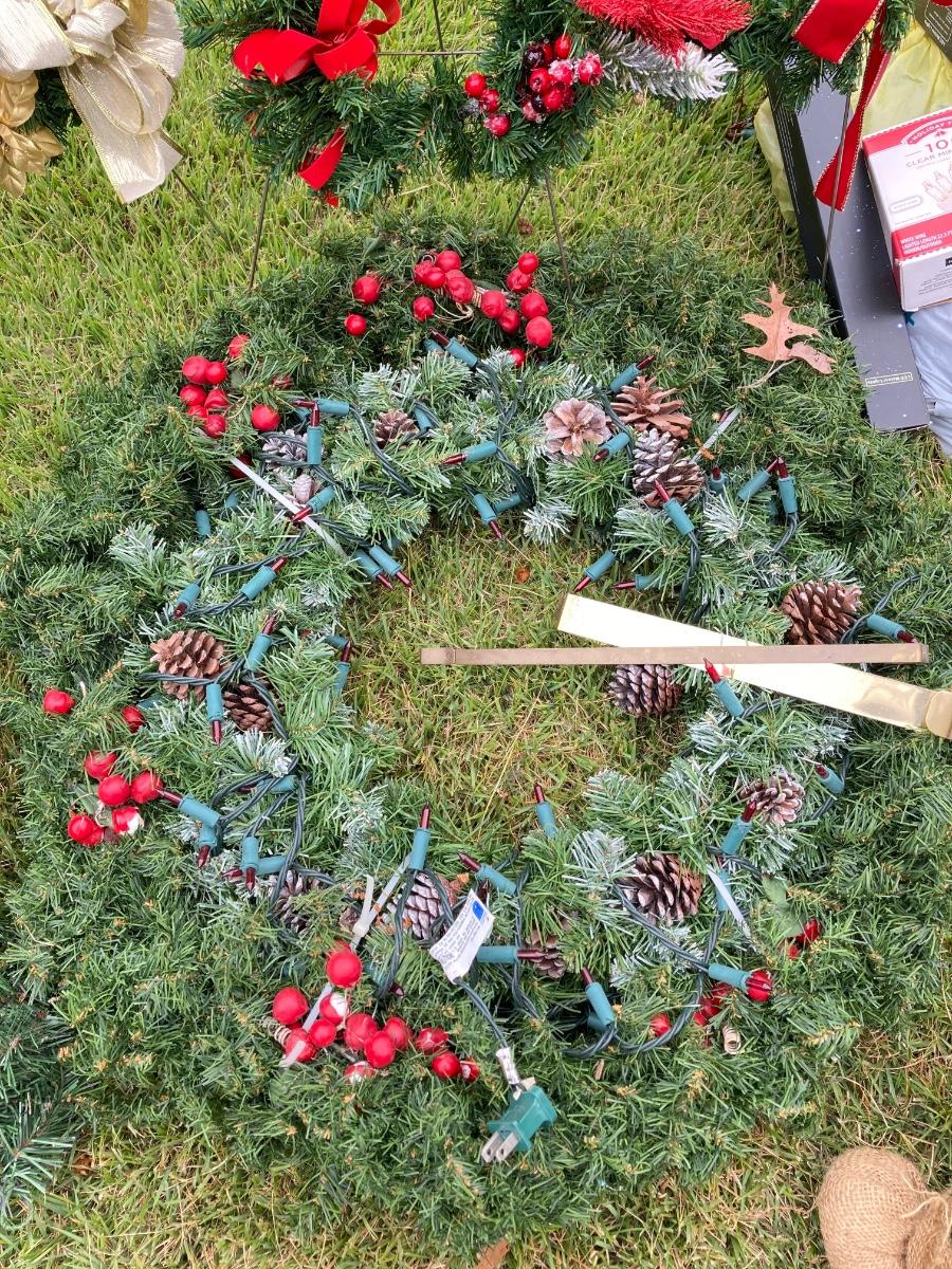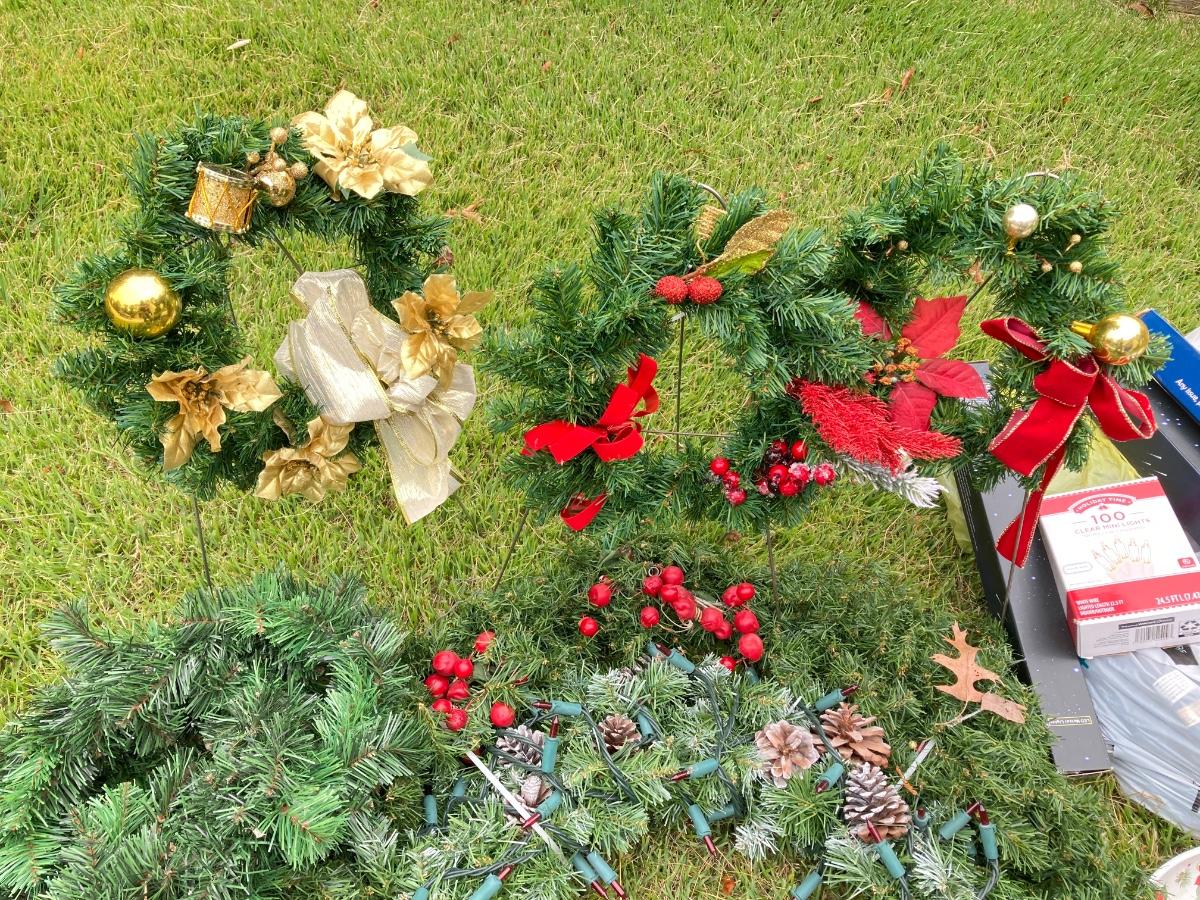 LOT 28G: Christmas Wreaths, Lights, Flags and More